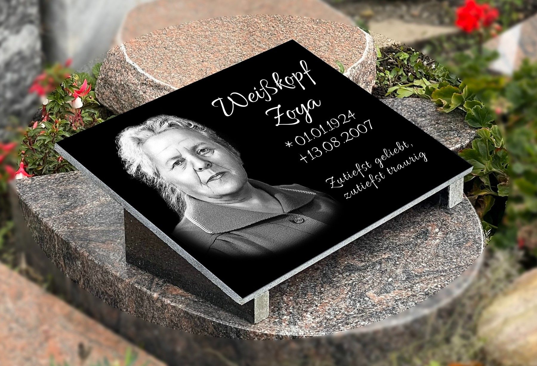 Grabstein mit Inschrift Granit, Grabschmuck, Gedenktafel mit Stützen 30x40cm N29