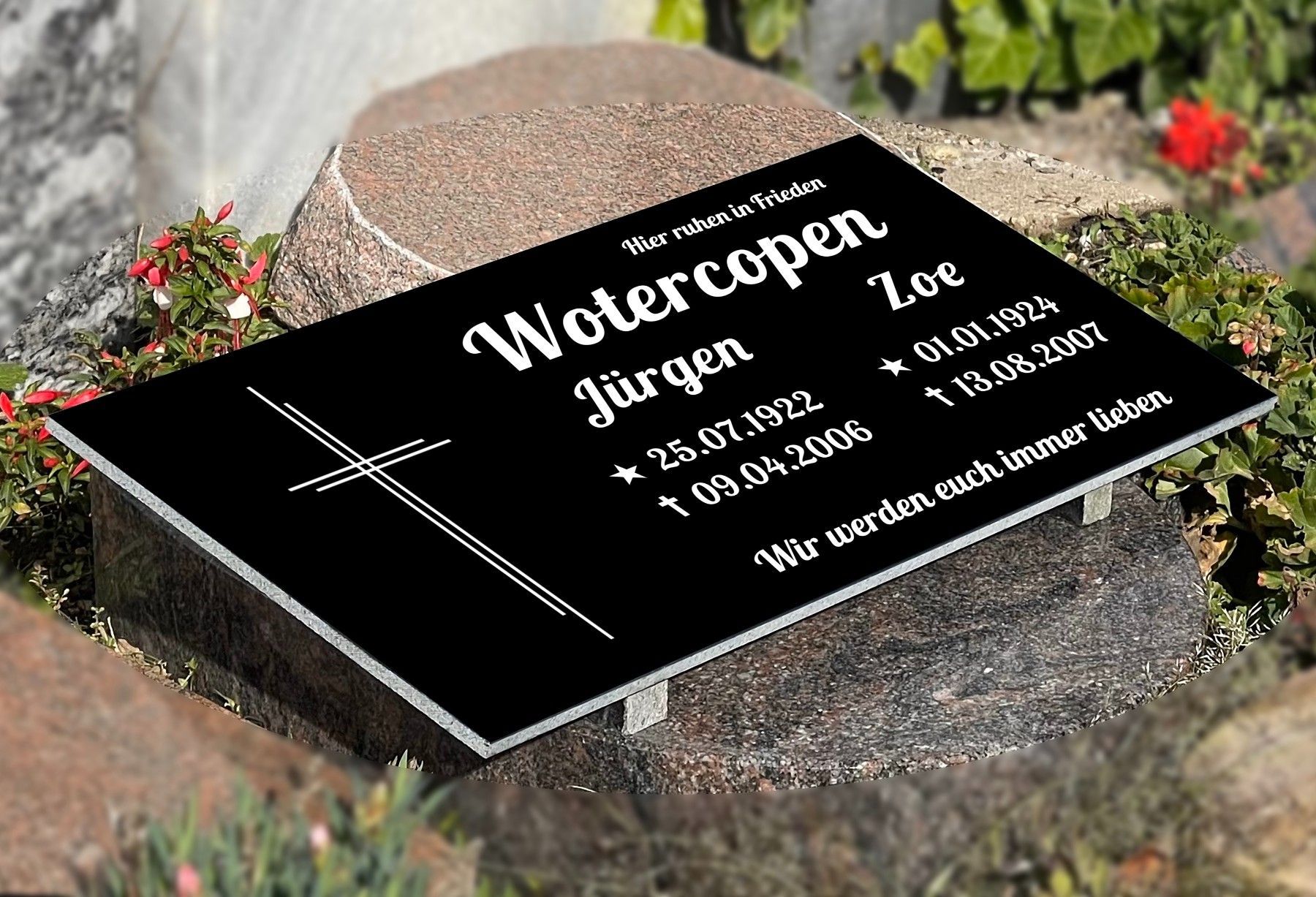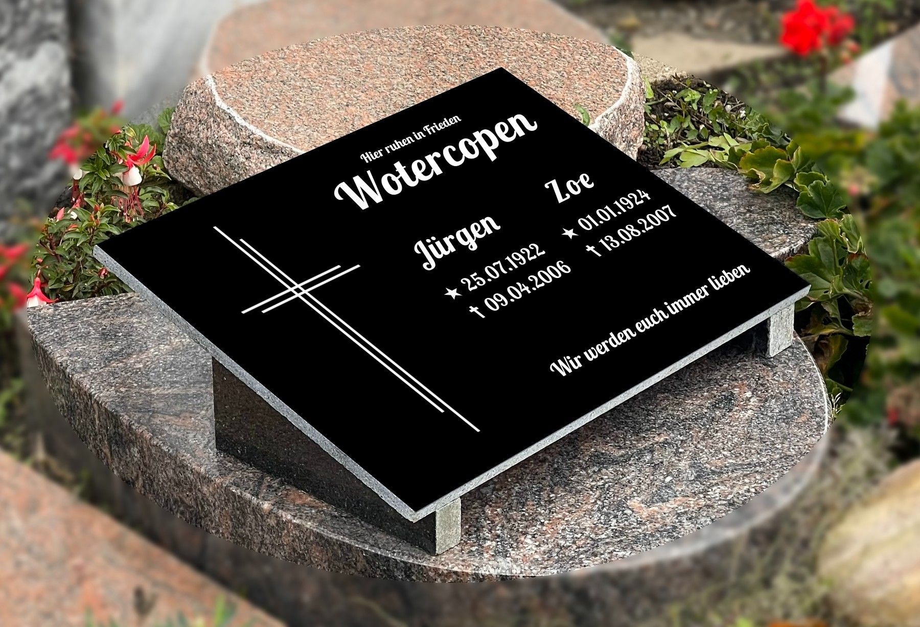 Grabstein mit Inschrift Granit, Grabschmuck, Gedenktafel mit Stützen 30x60cm N11D