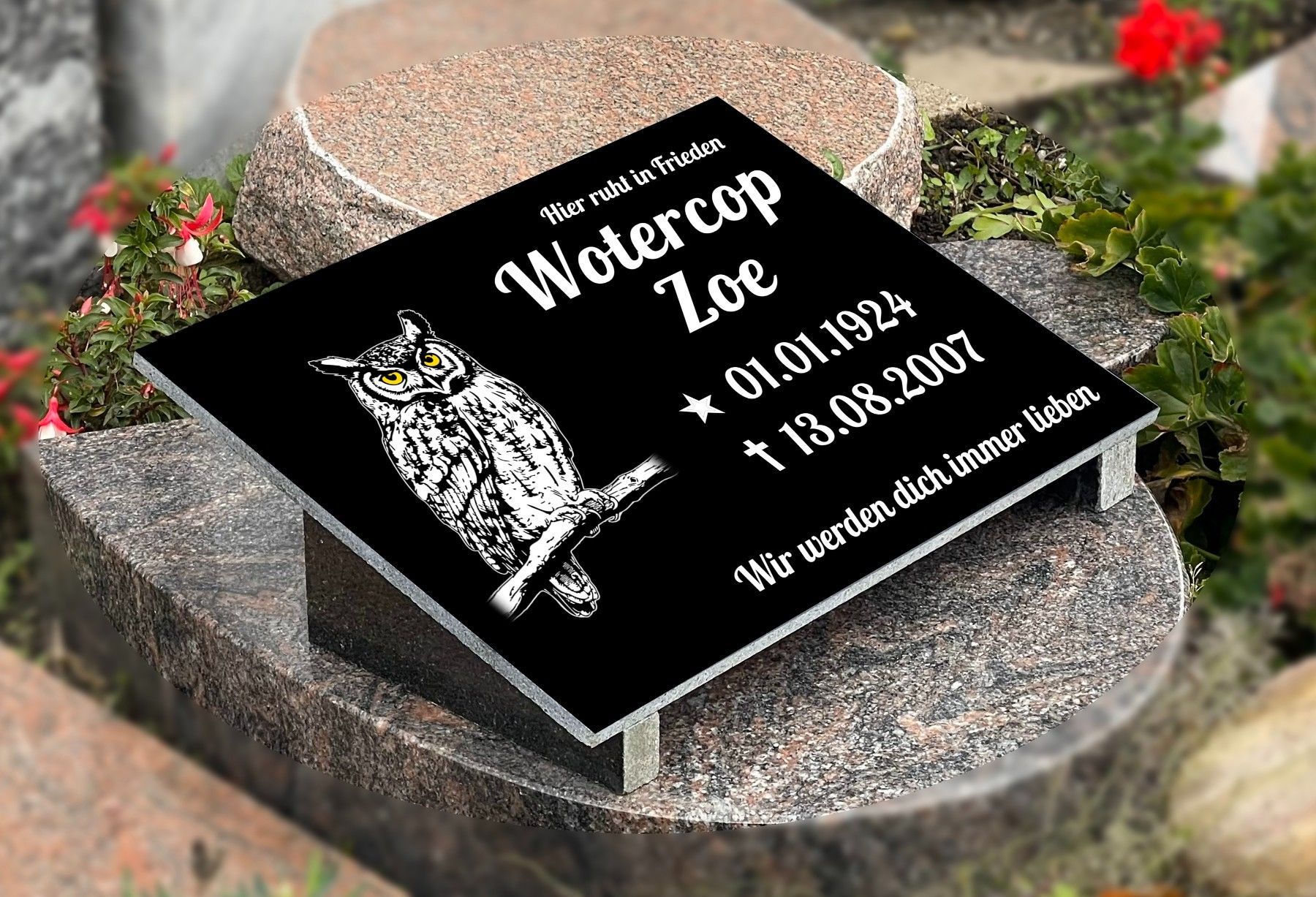Grabstein mit Inschrift Granit, Grabschmuck, Gedenktafel mit Stützen 30x60cm N16