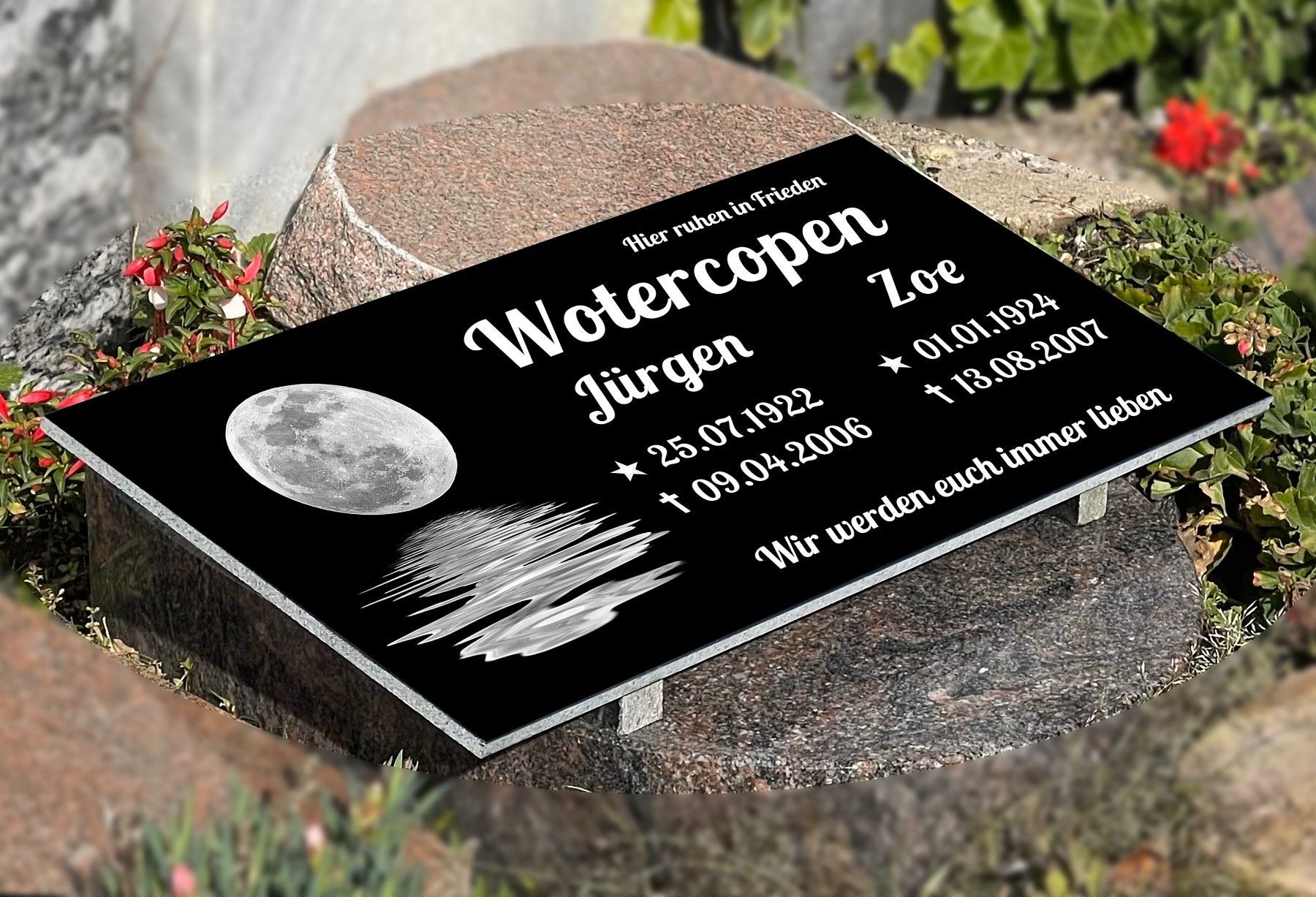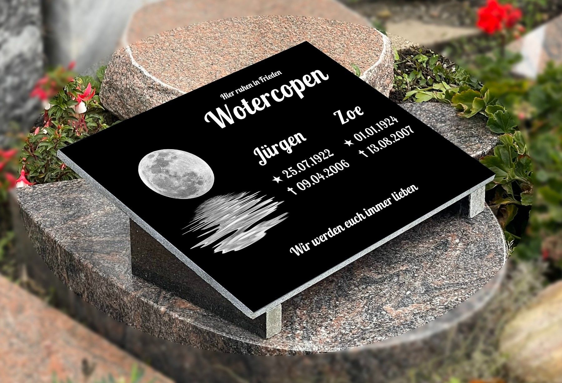 Grabstein mit Inschrift Granit, Grabschmuck, Gedenktafel mit Stützen 30x60cm N24D