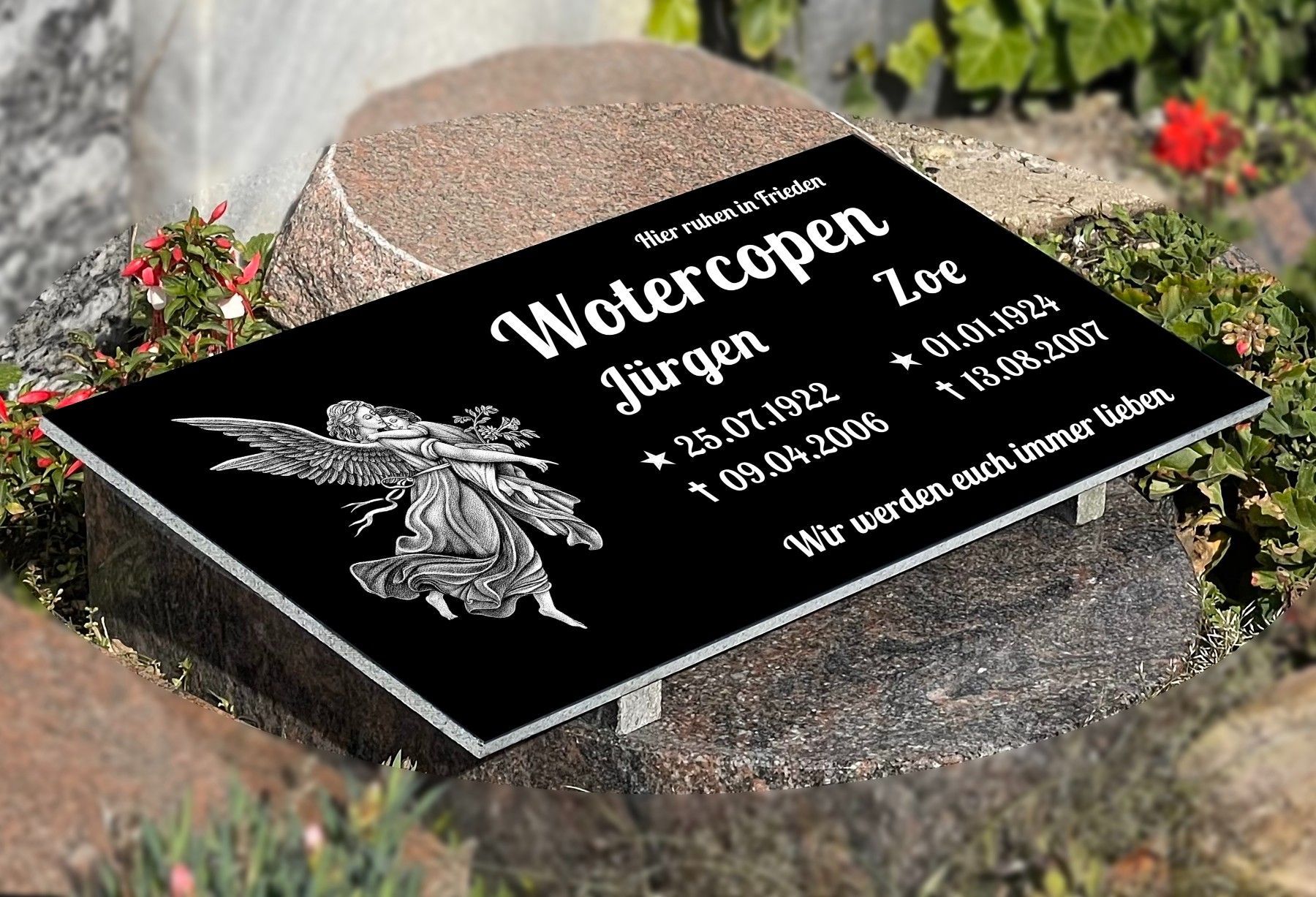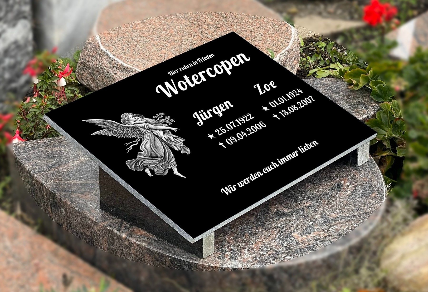 Grabstein mit Inschrift Granit, Grabschmuck, Gedenktafel mit Stützen 30x60cm N26D