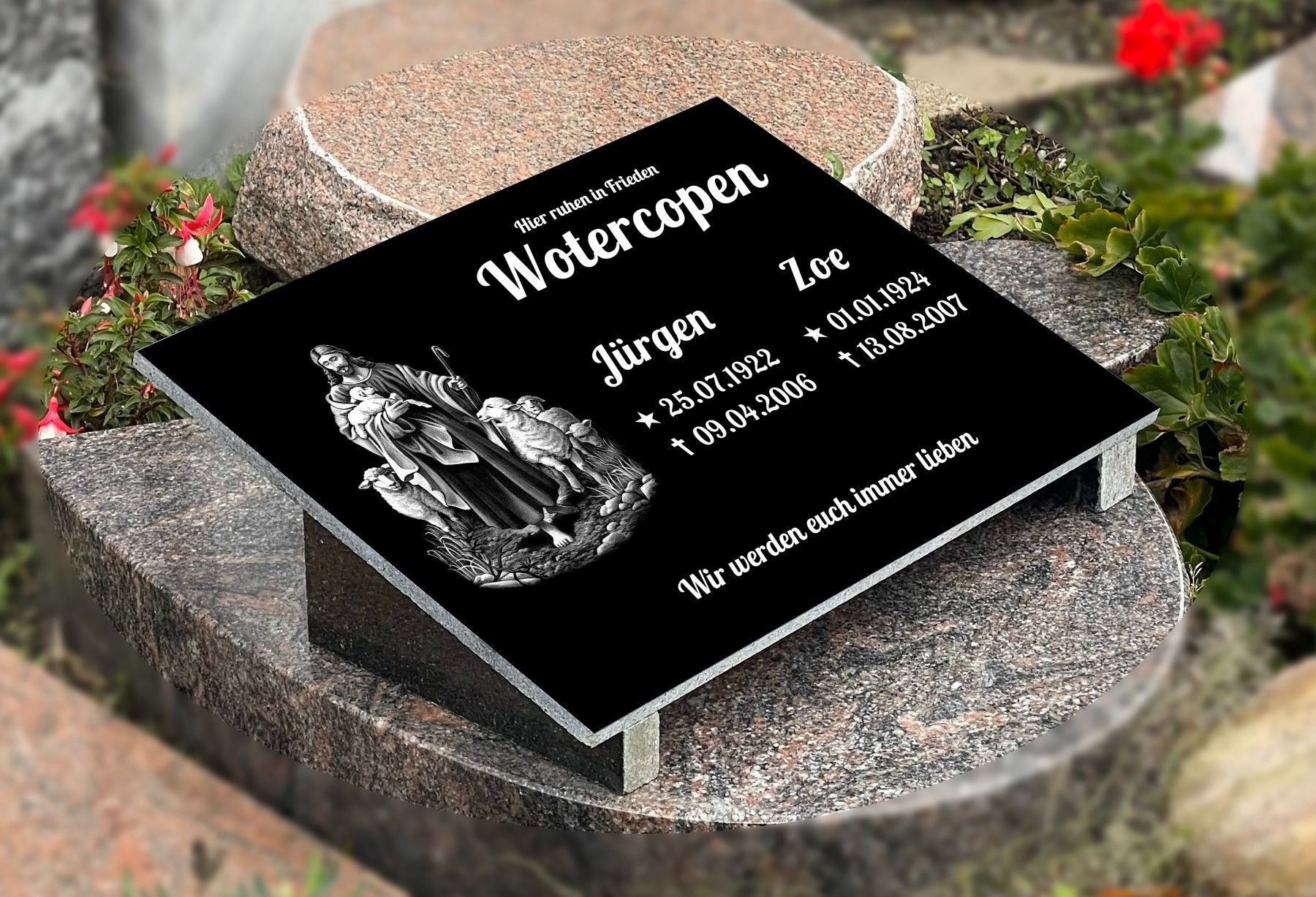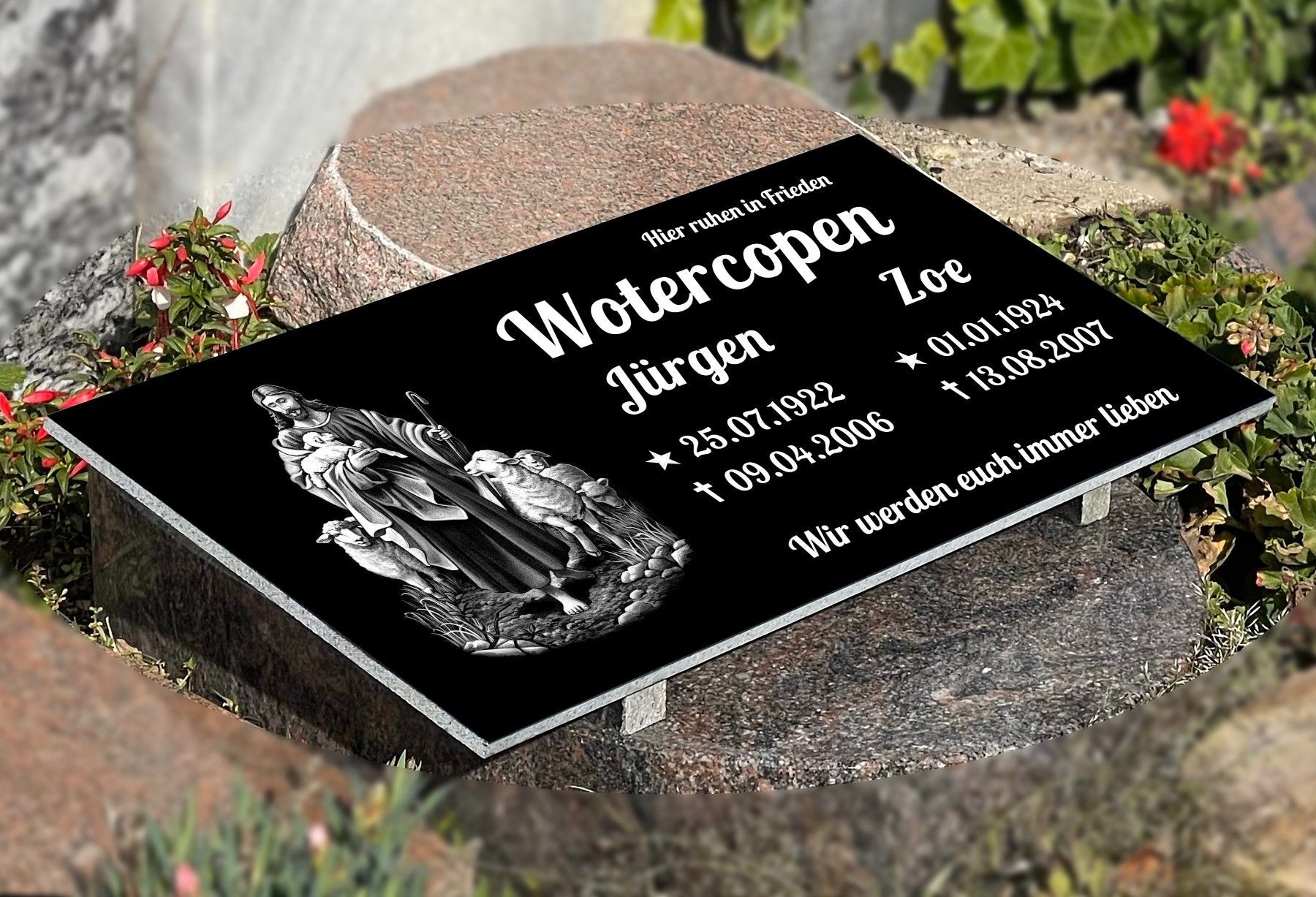 Grabstein mit Inschrift Granit, Grabschmuck, Gedenktafel mit Stützen 30x60cm N27D
