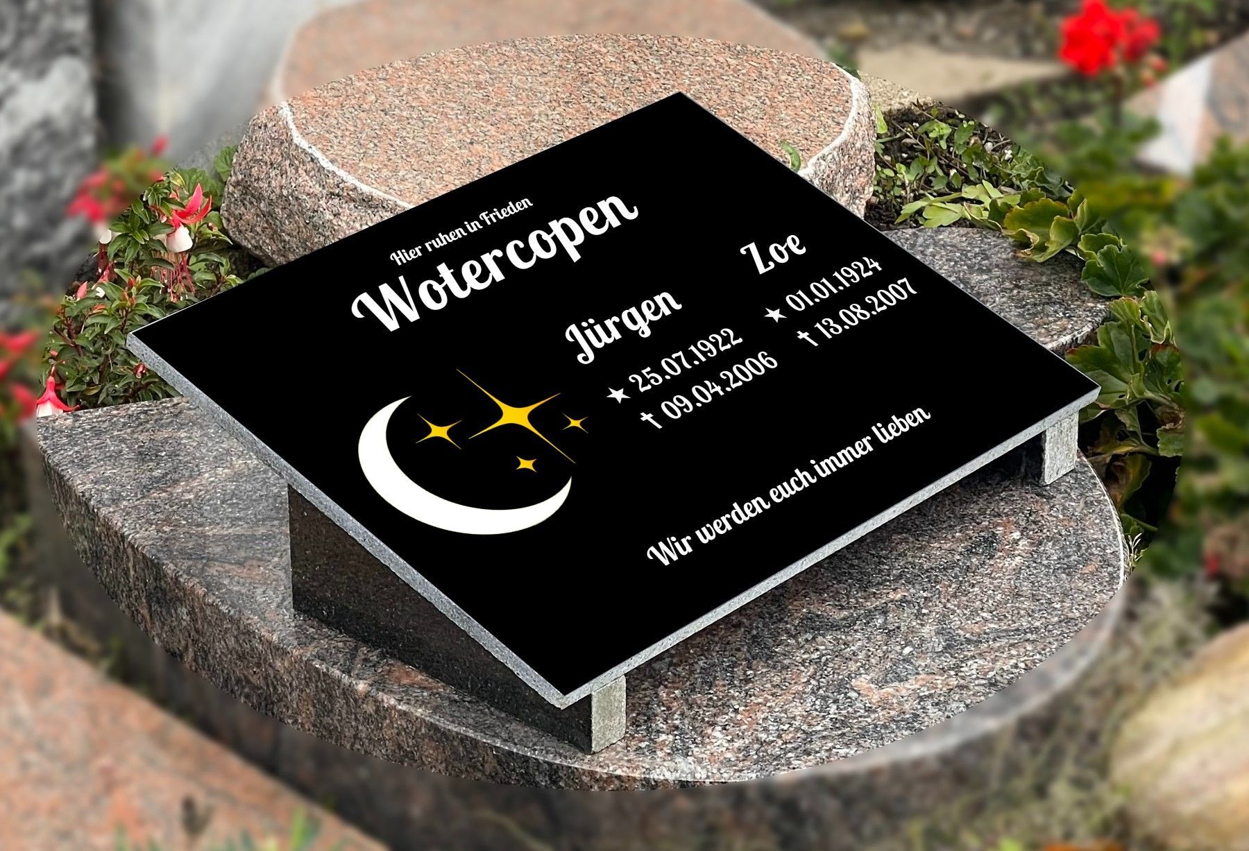 Grabstein mit Inschrift Granit, Grabschmuck, Gedenktafel mit Stützen 30x60cm N5D