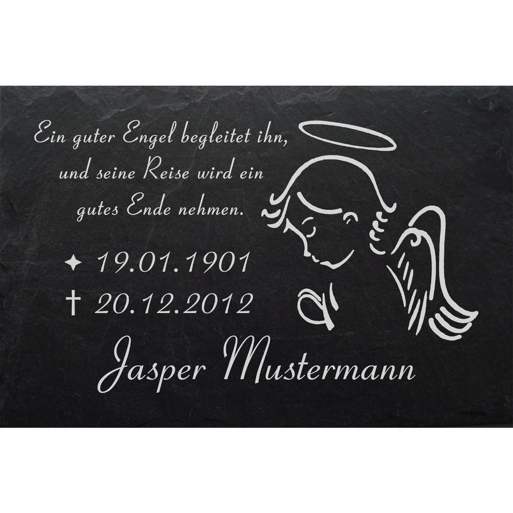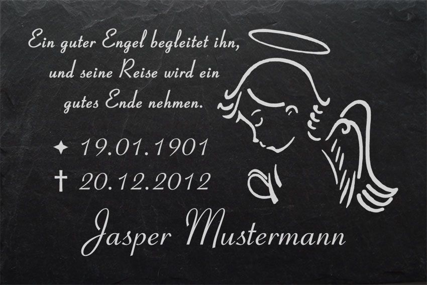 Grabstein Schiefer Platte Grab Tafel Engel-001 @ WUNSCH - GRAVUR @ 35 x 25 cm