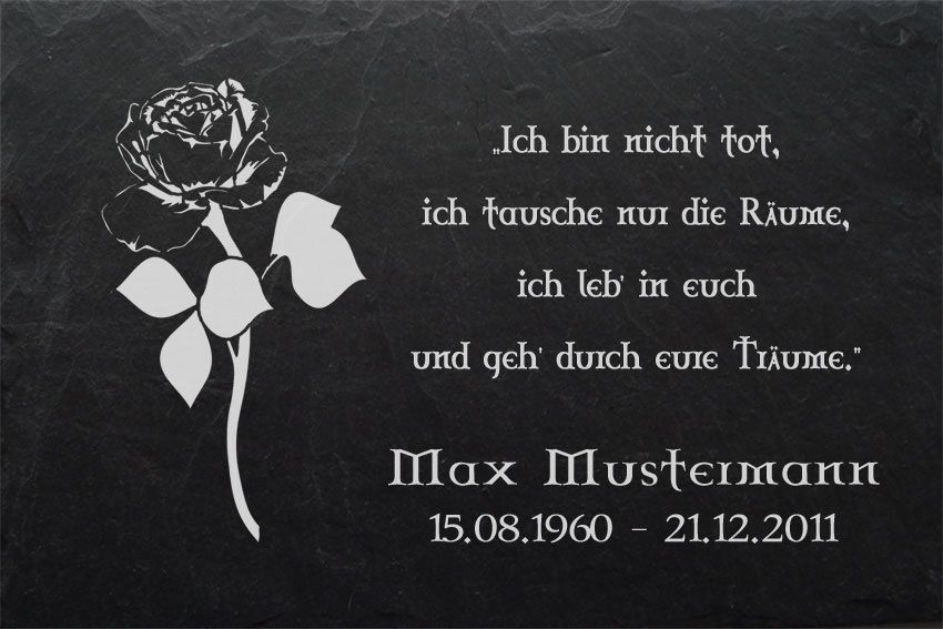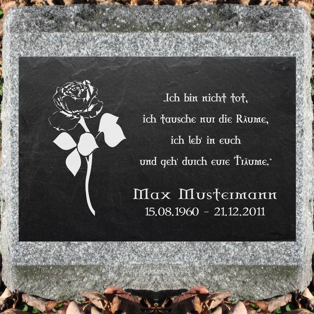 Grabstein Schiefer Stein Grab Tafel mit Rose-002 @ MIT IHREM TEXT @ 30 x 20 cm