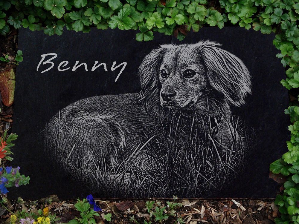 Grabstein Tiergrabstein Gravur Hunde Hund-042 - 20 x 15 cm - Ihr Foto + Text