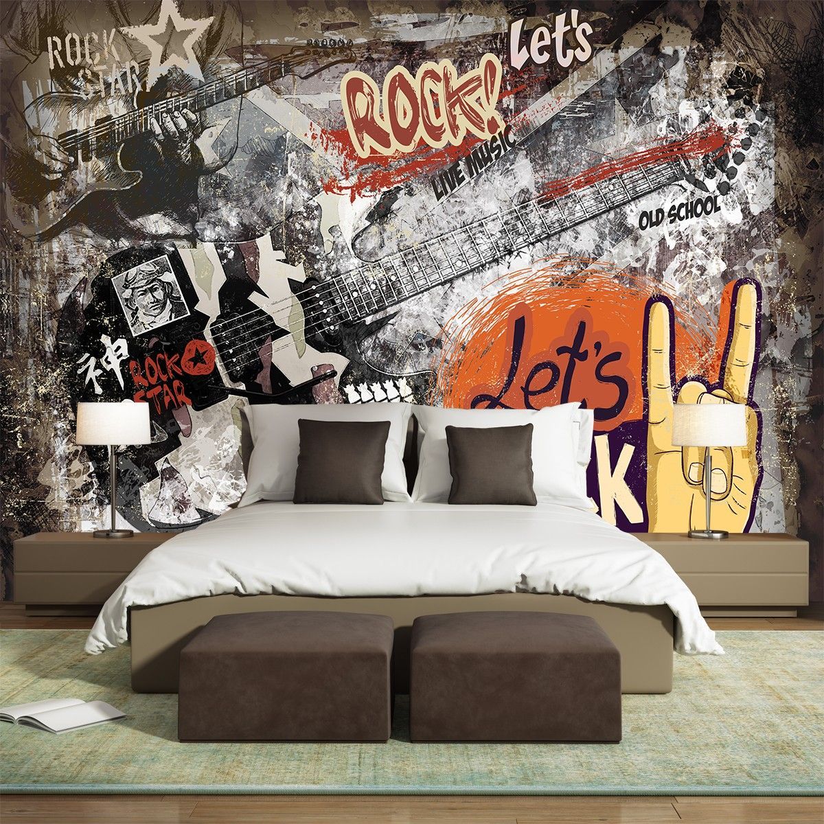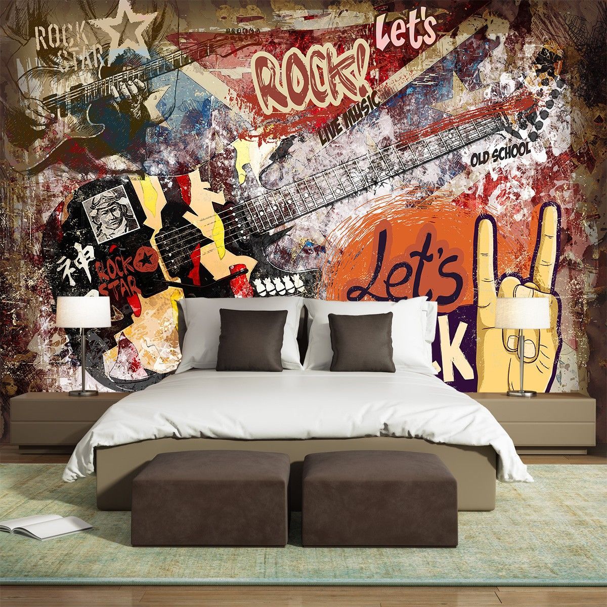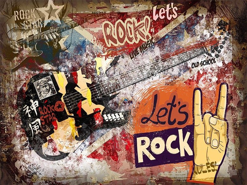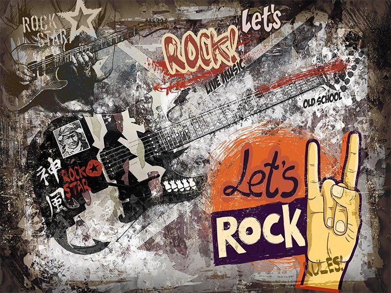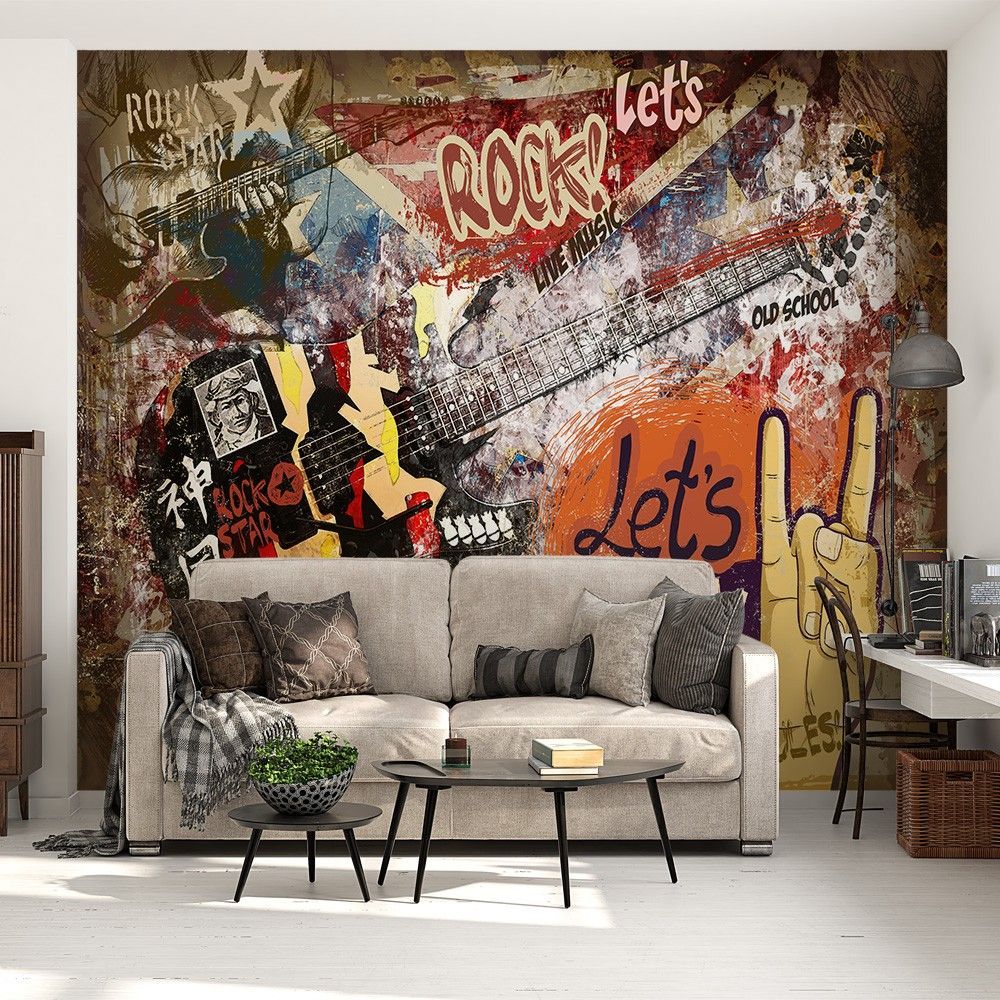Graffiti Rock Musik Wandtapete Gitarre Wandbild Modern Street Art XXL 12352-53