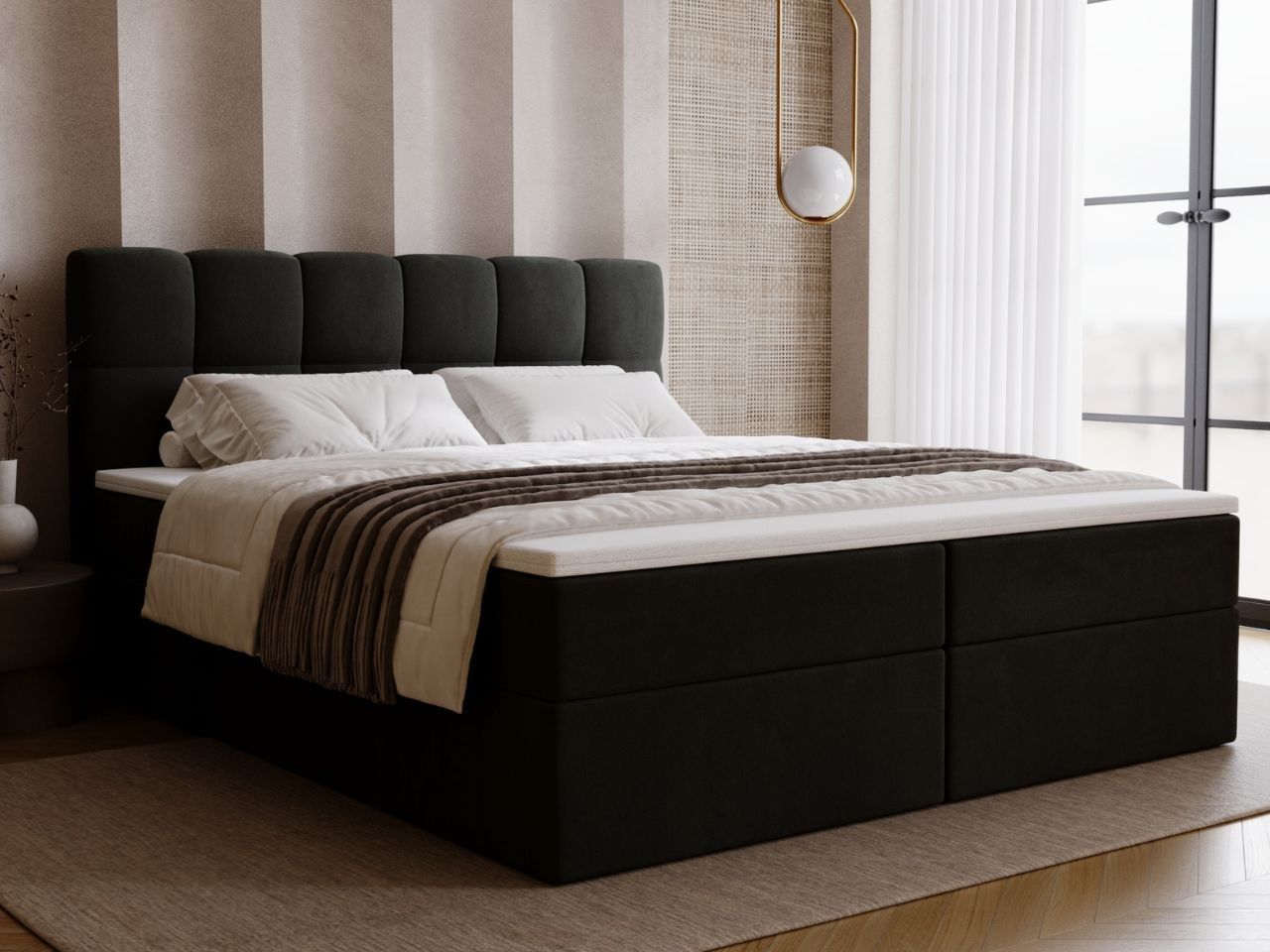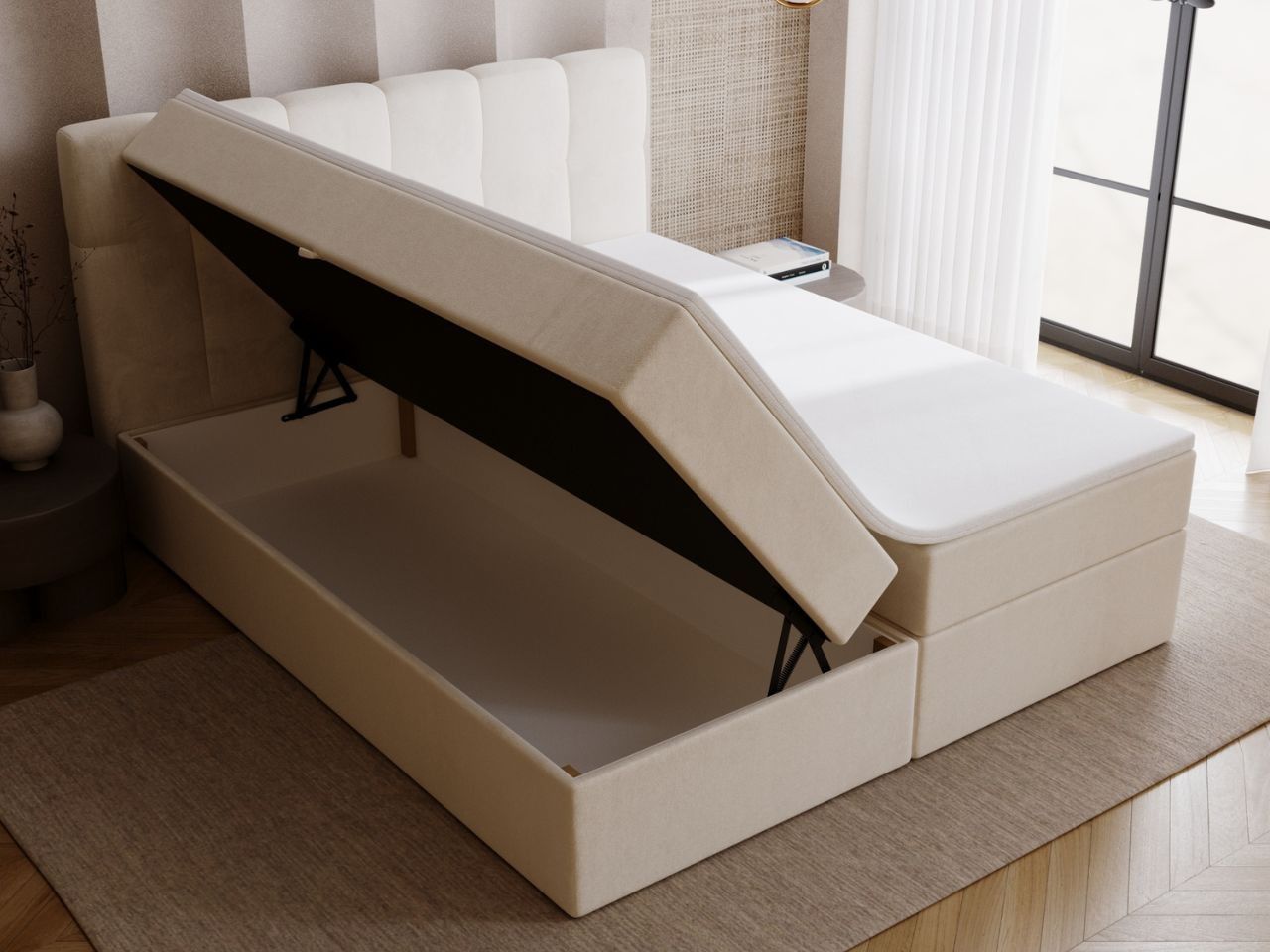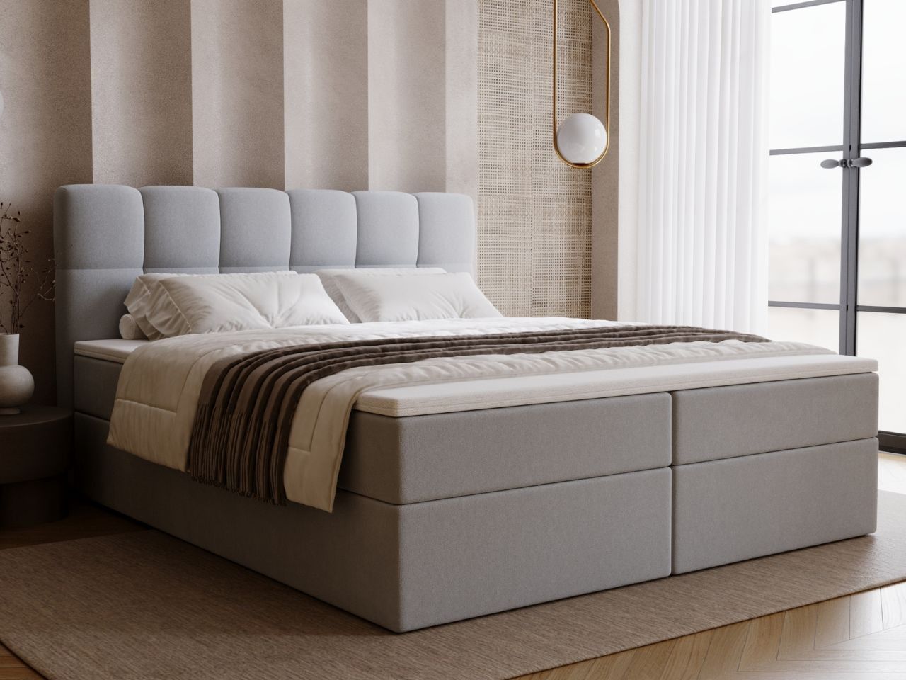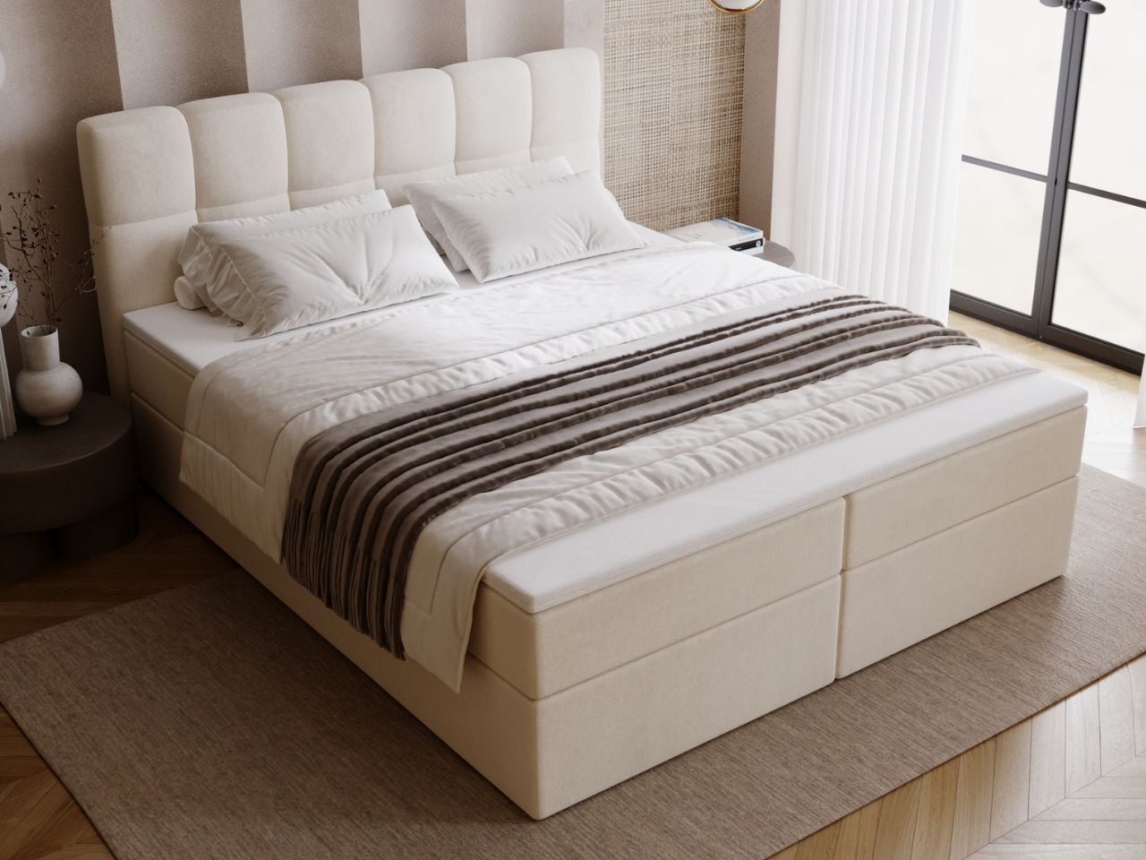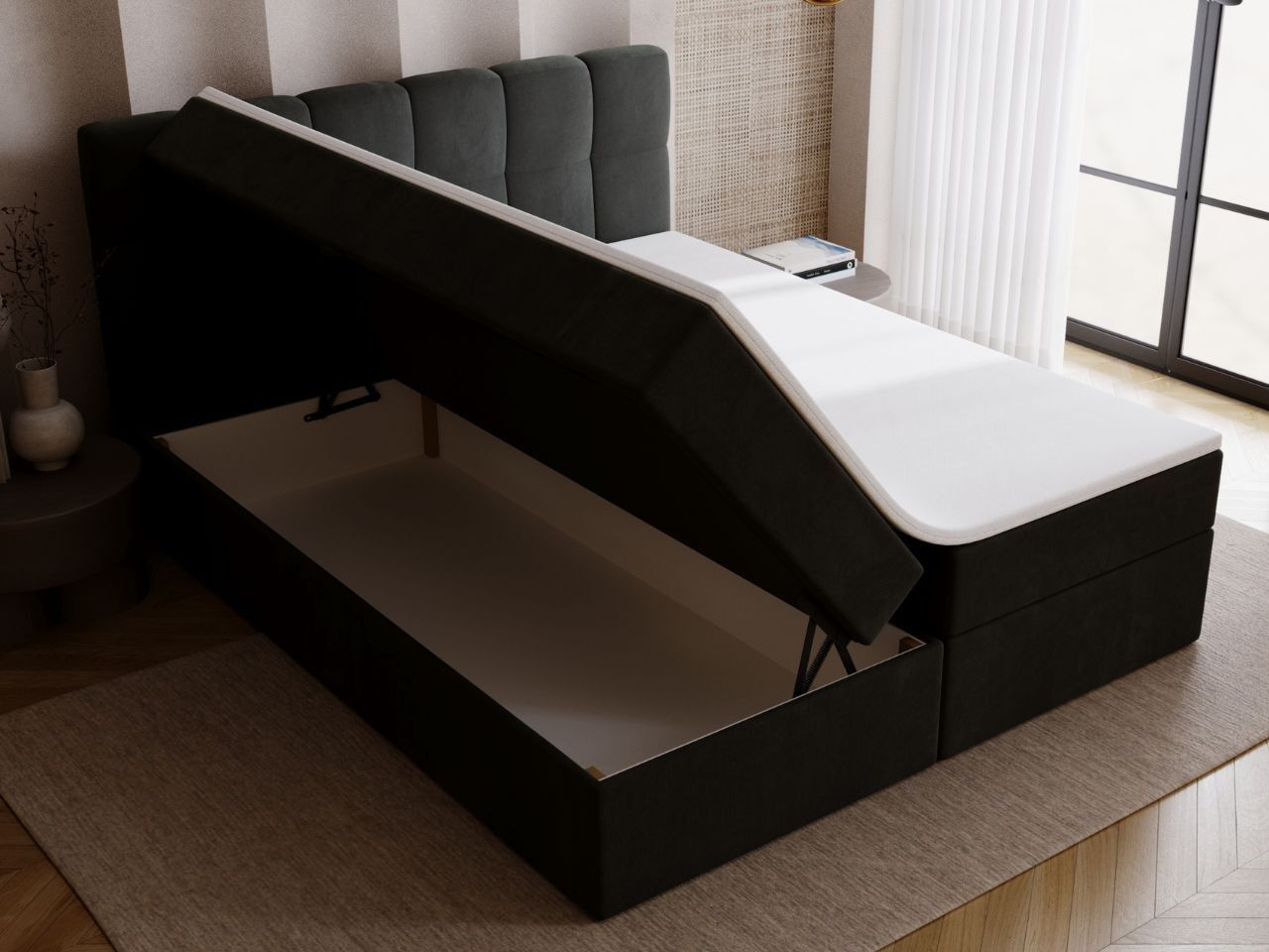 Graingold Maison Bett, Boxspringbett mit Bettkasten, Boxspringbett mit Topper