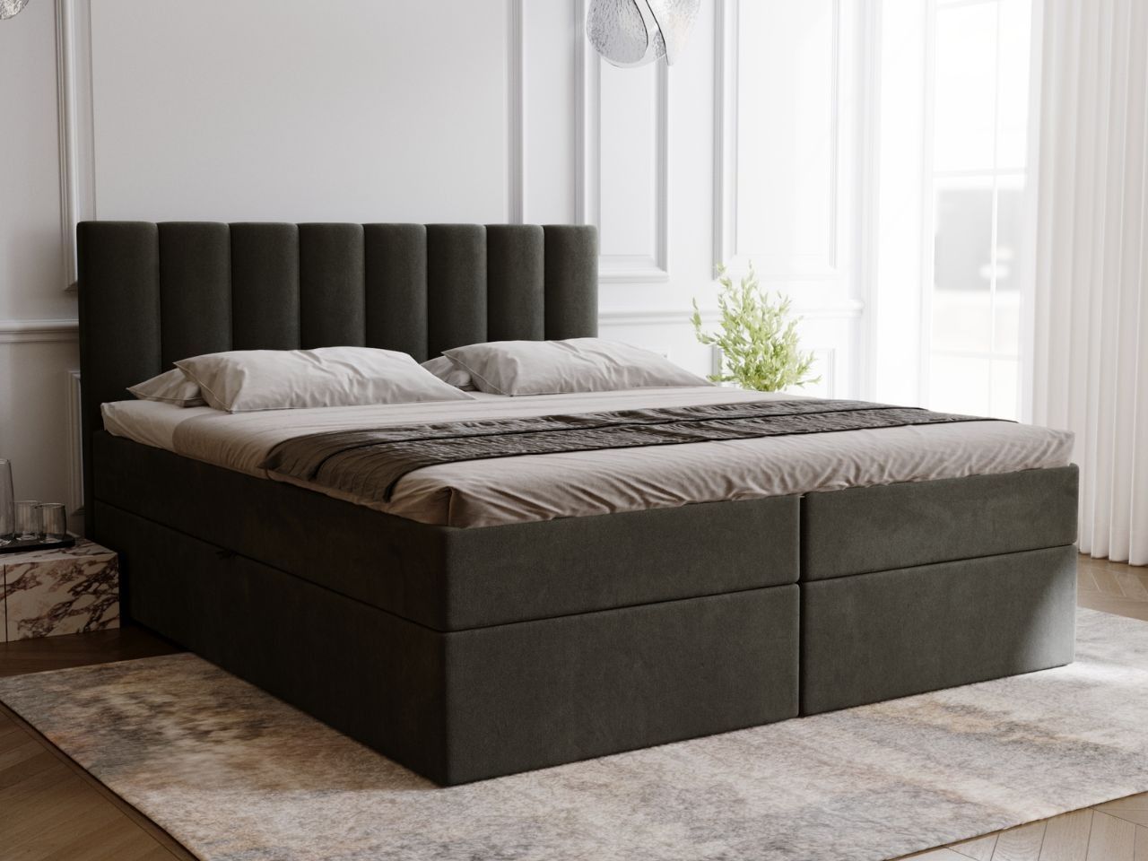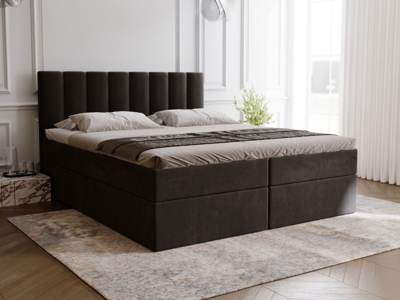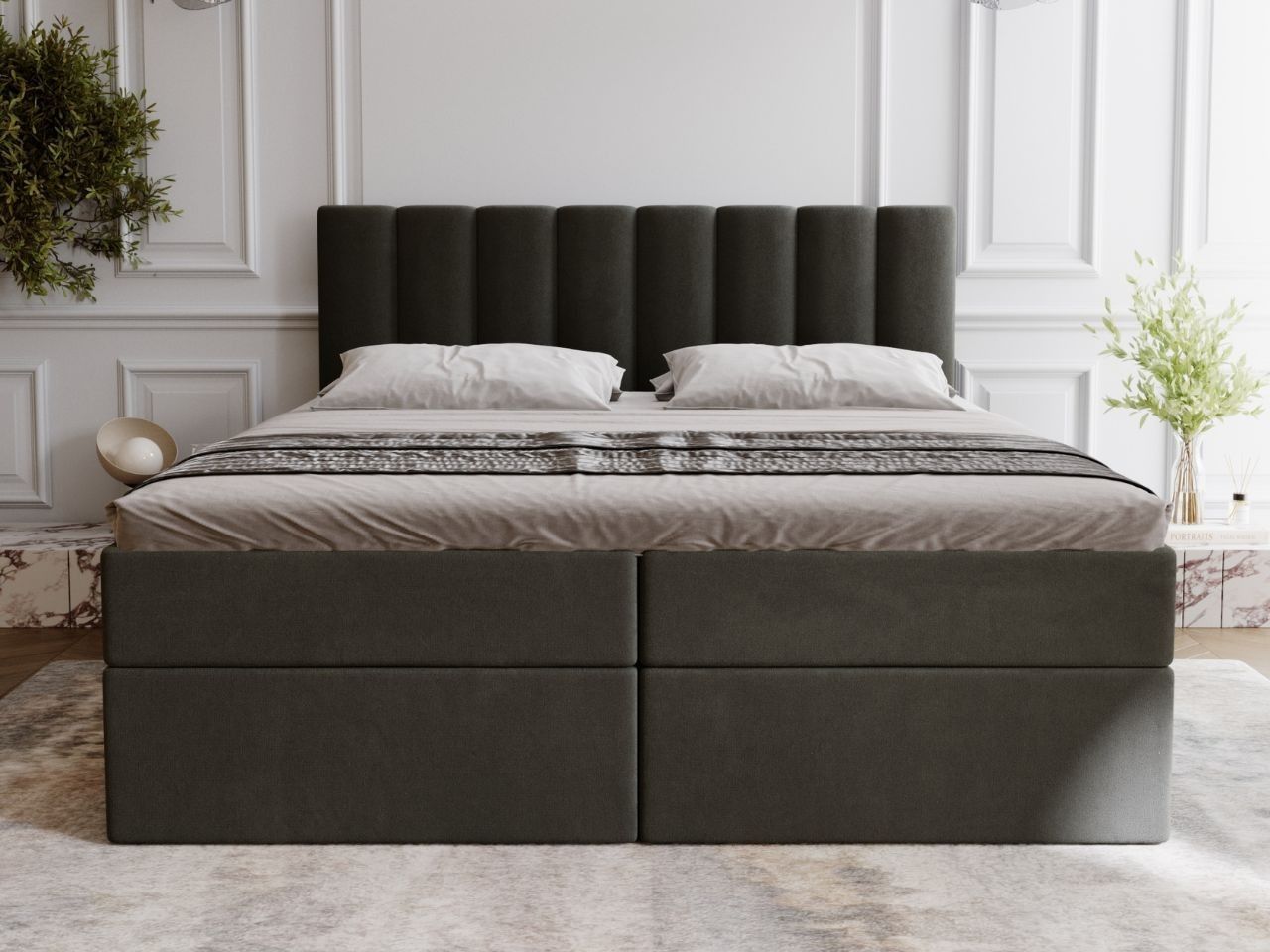 Graingold Mocca Bett, Boxspringbett mit Bettkasten, Boxspringbett mit Topper