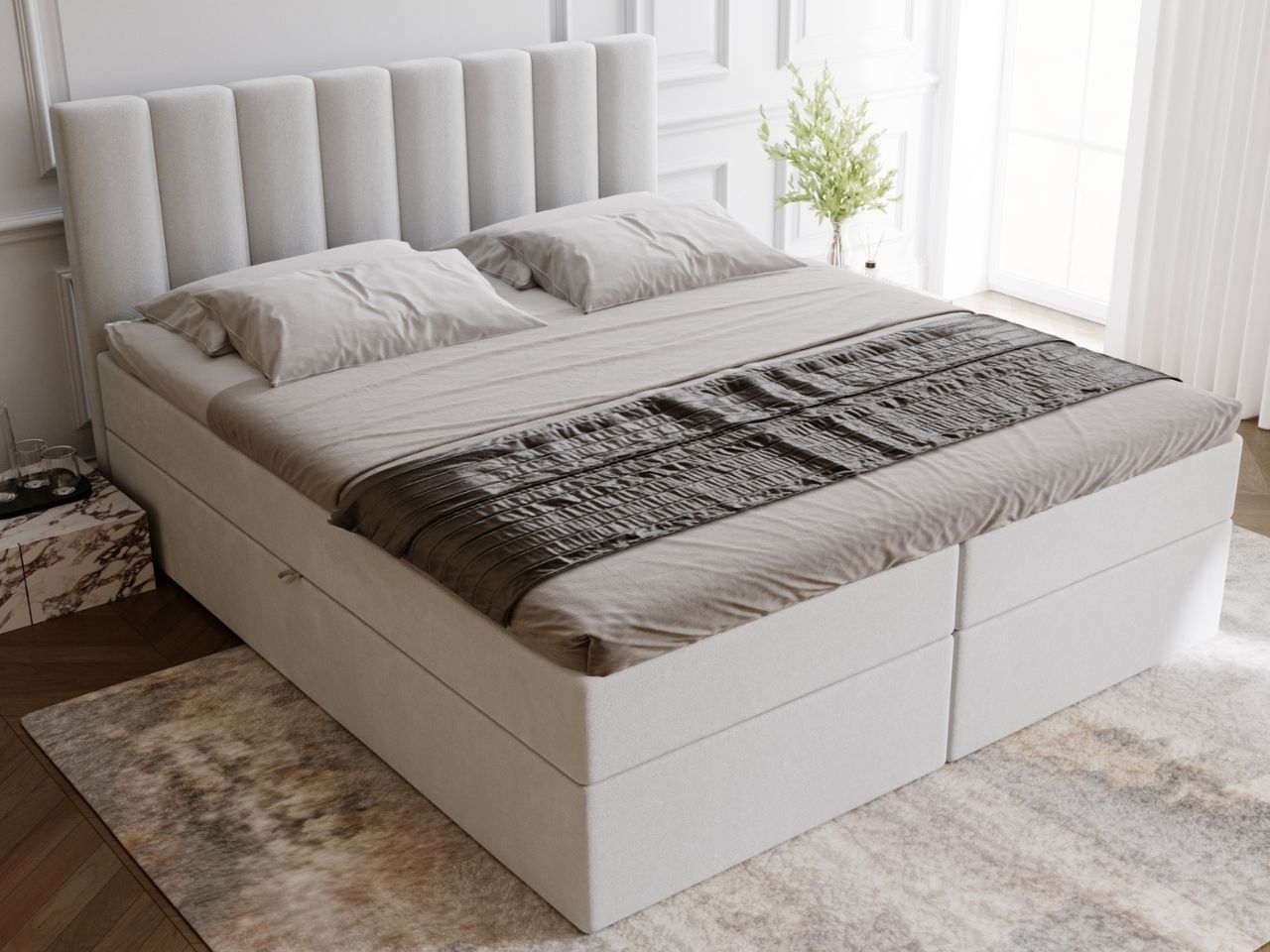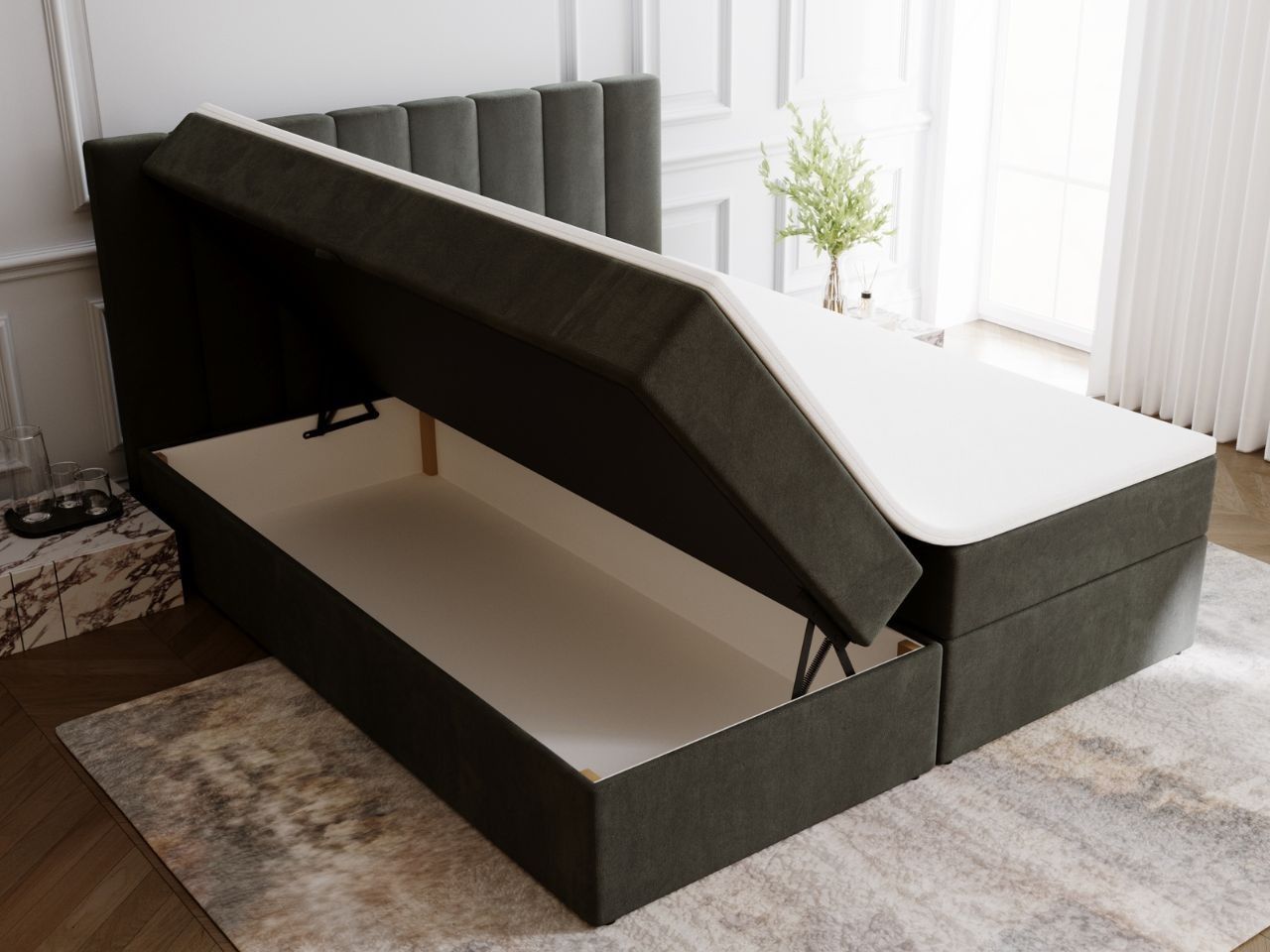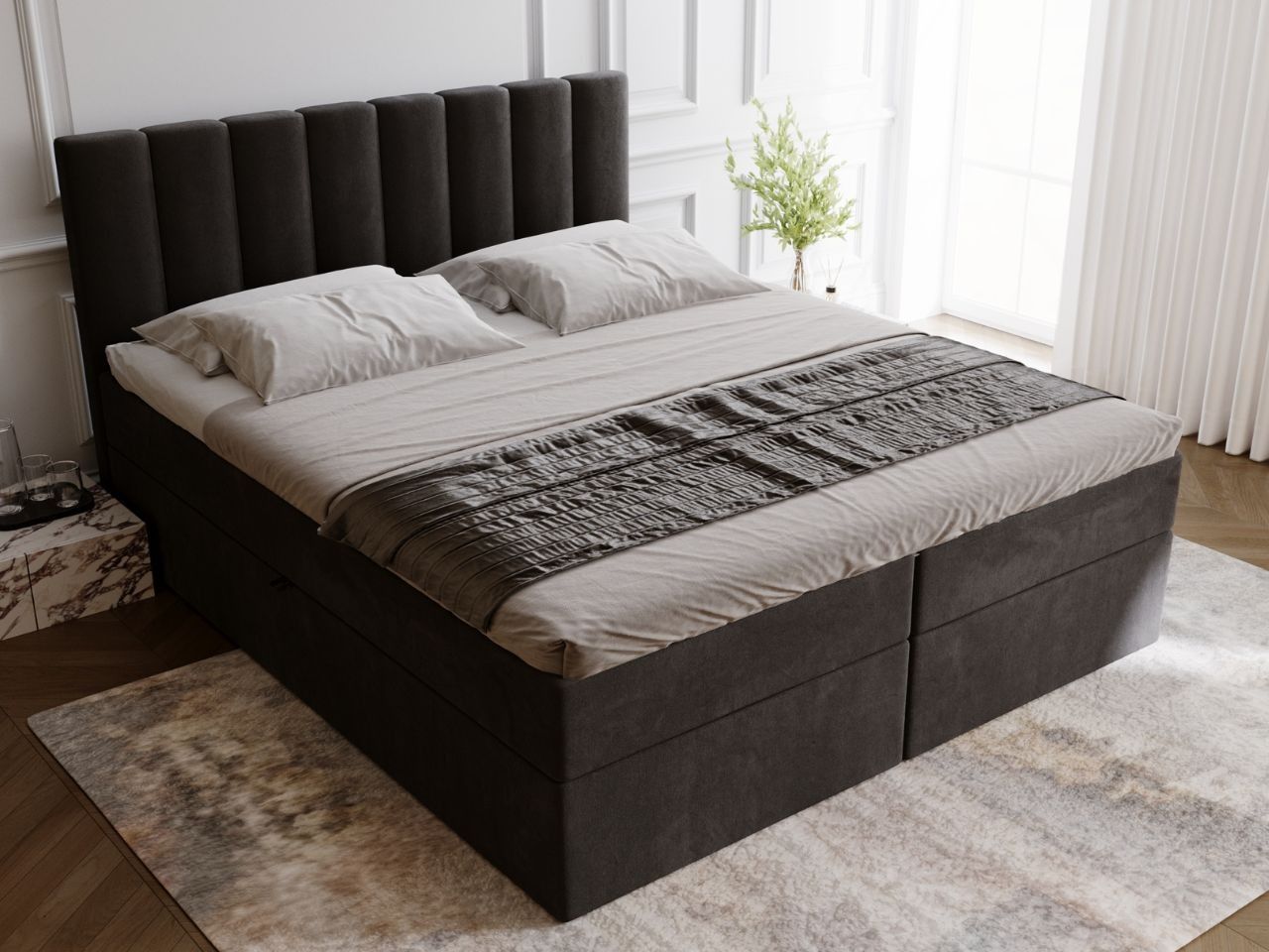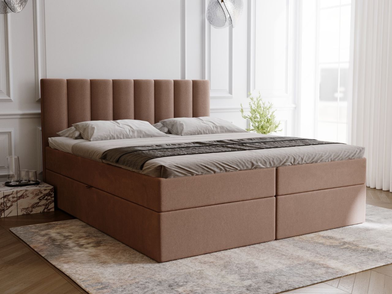 Graingold Mocca Bett, Boxspringbett mit Bettkasten, Boxspringbett mit Topper