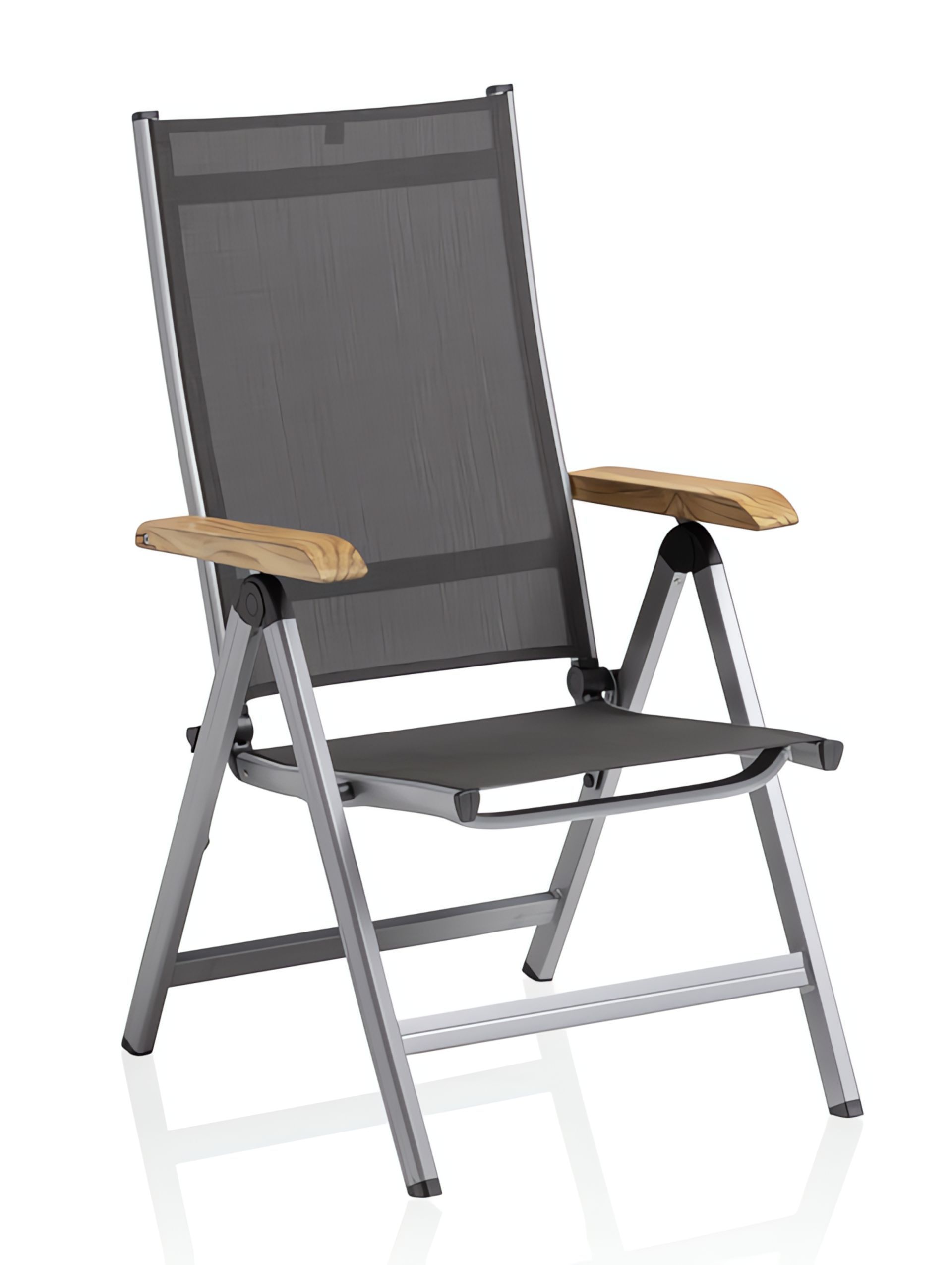 KETTLER Granada Multipositionssessel silber / anthrazit mit Teakarmlehnen
