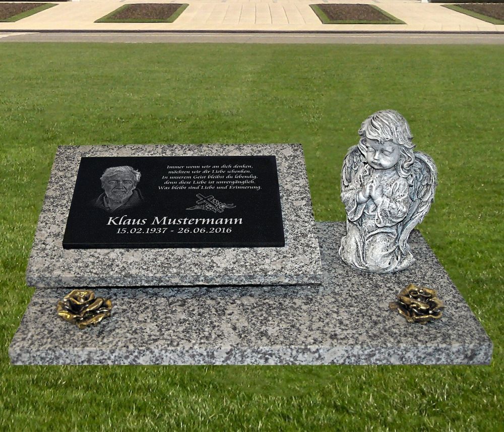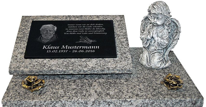 Granit Grabplatte Grabmal Gedenkstein 60x40 cm Foto + Text Gravur Grabstein gg40s