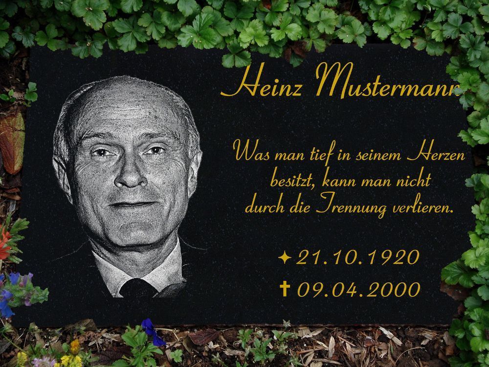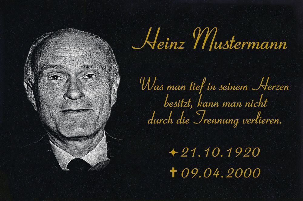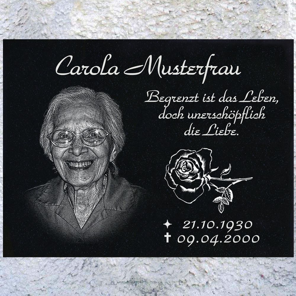 Granit Grabplatte Grabmal Gedenkstein Grabstein g02 Text + Foto Gravur 30x20 cm