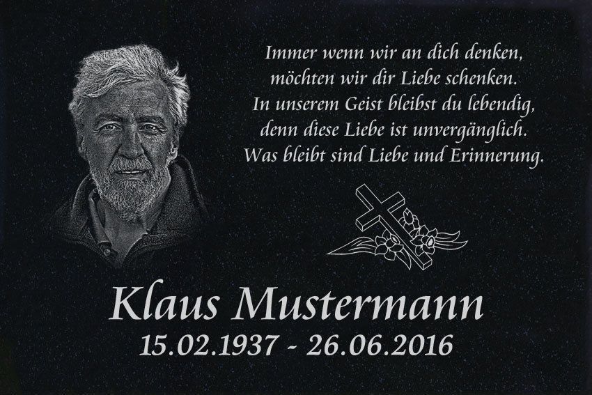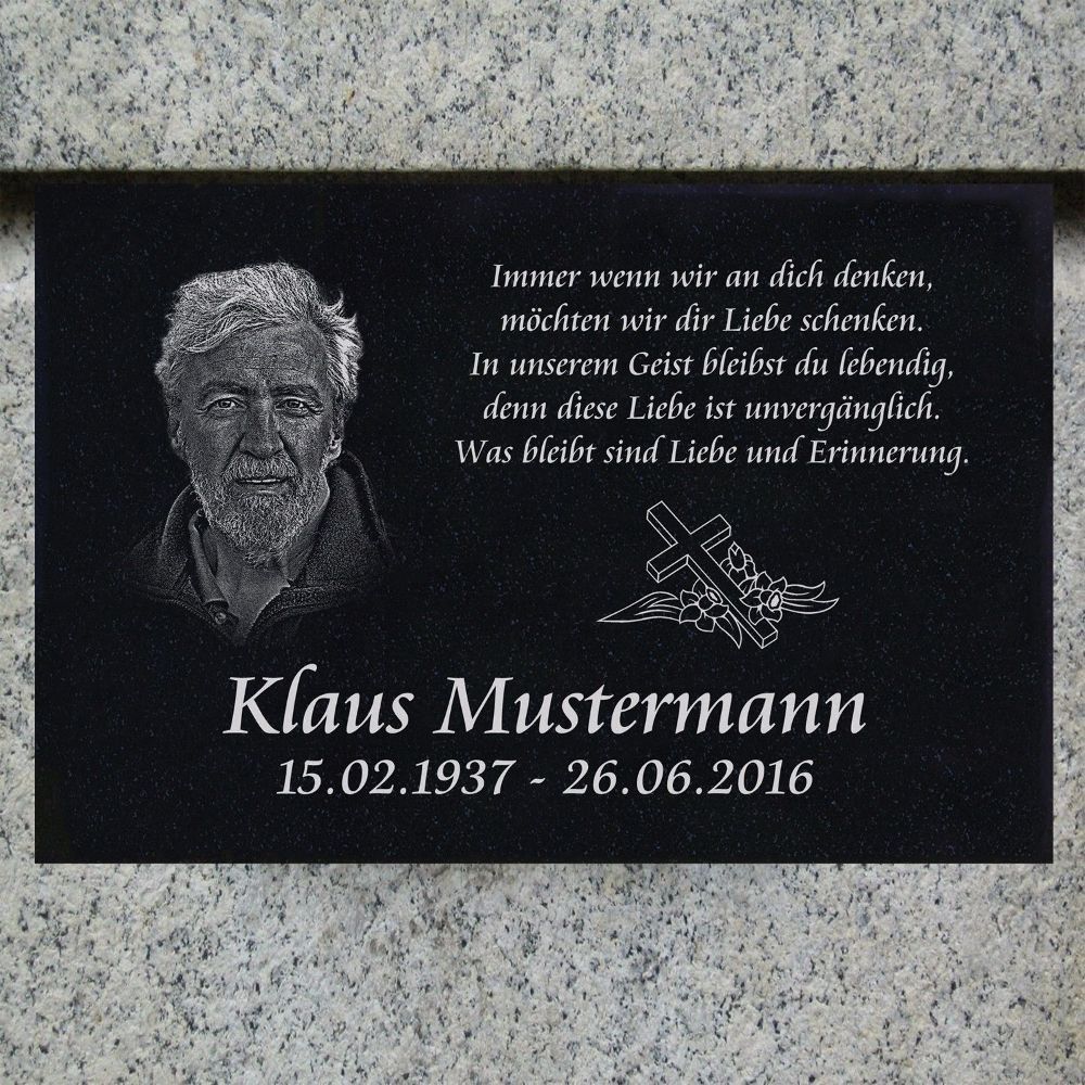 GRANIT Grabplatte Grabtafel Gedenkstein Grabstein g03-Ihr Foto + Ihr Text-30x20cm