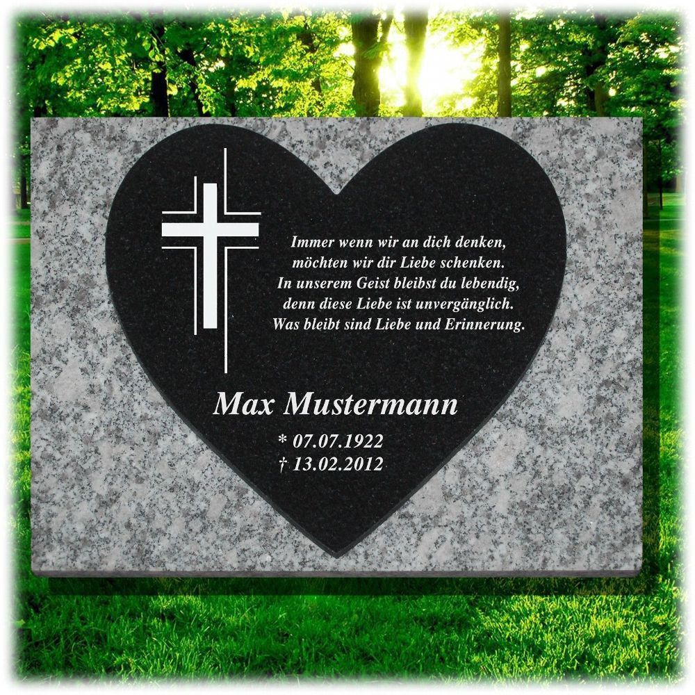 Granit Grabstein Grabplatte Grabmal Herzform - inkl. Gravur - 60x40x3 cm - hg65