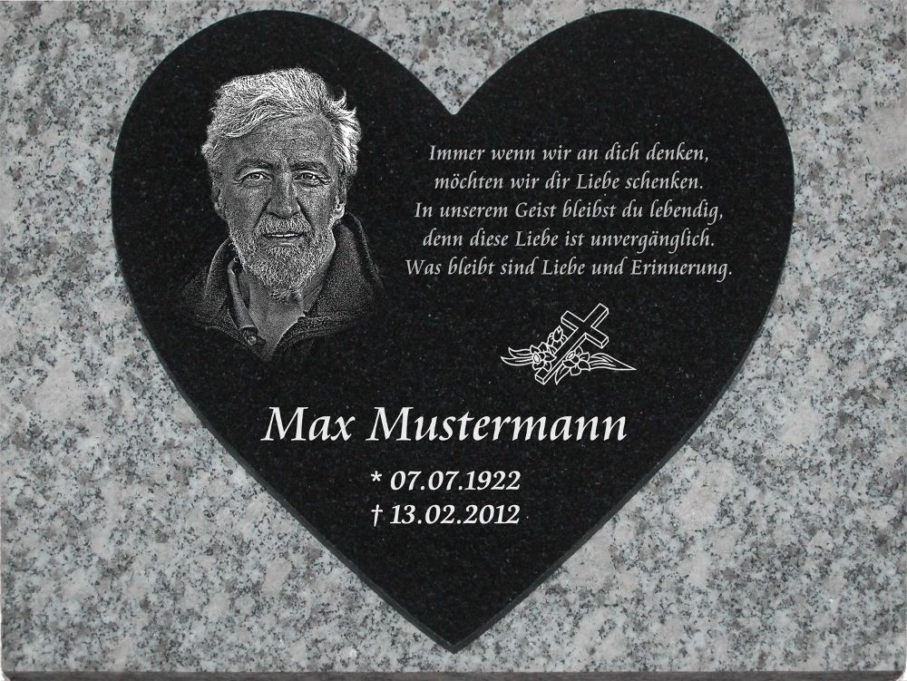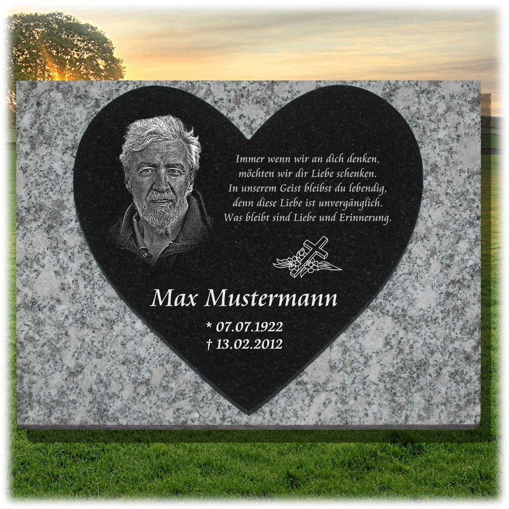 Granit Grabstein Grabplatte Grabmal Herzform -Text/ Foto Gravur- 60x40 cm - hg66