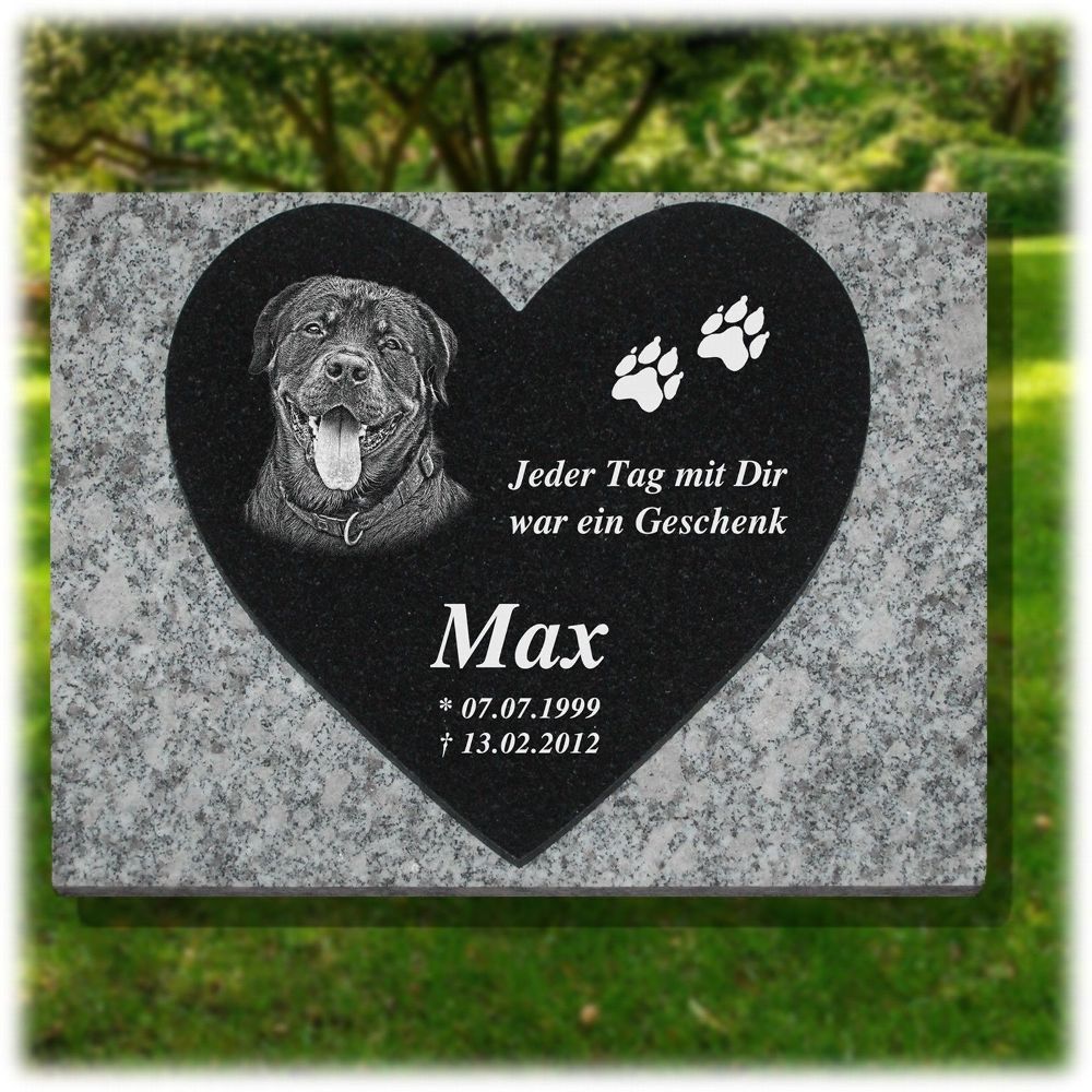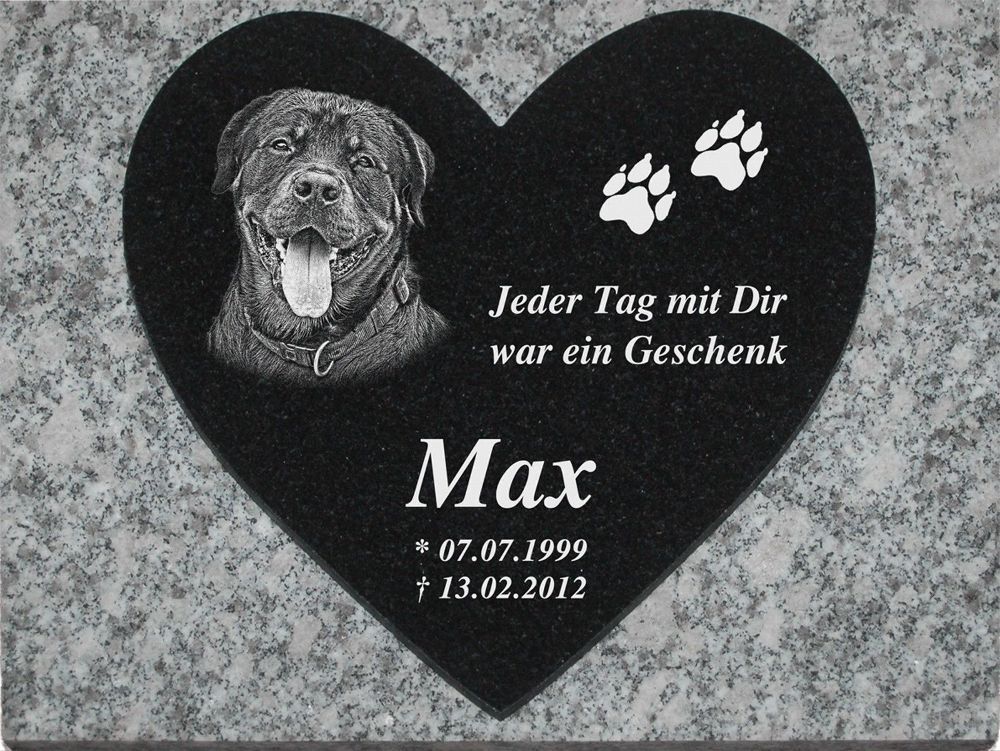 Granit Grabstein Grabplatte Herzform -Text/ Foto Gravur- 40x30 cm - Hund-hg64