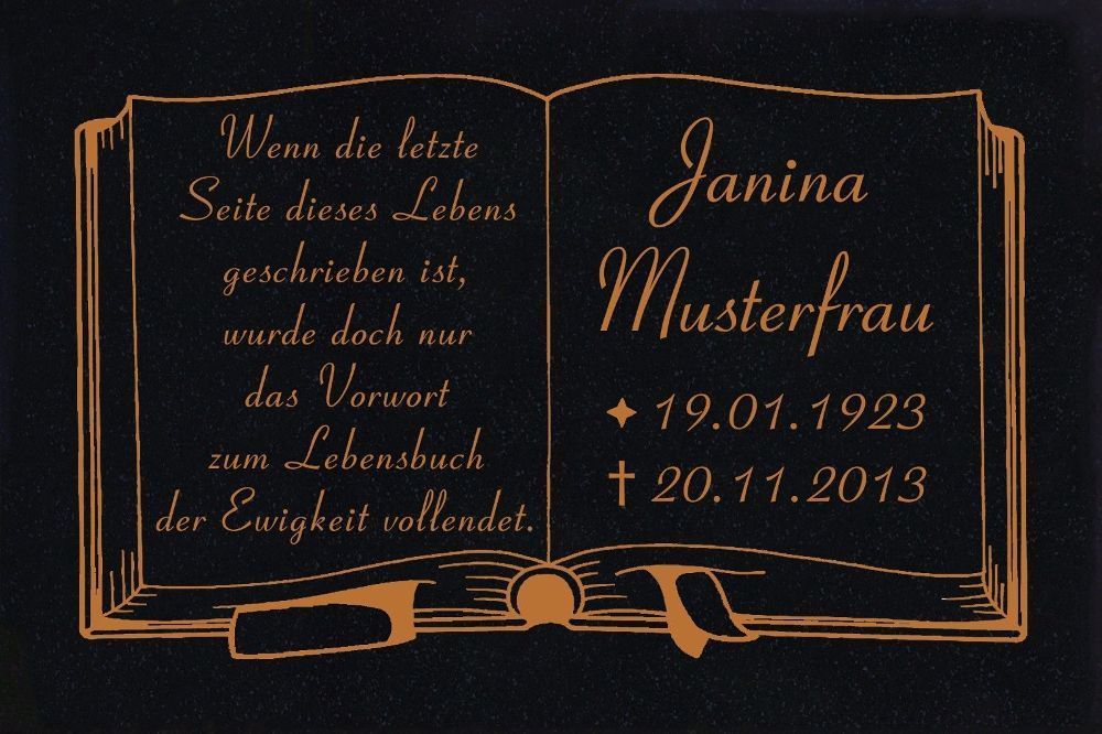 GRANIT Grabsteine Grabplatte Bücher offenes Buch-g01 -farbige Textgravur- 30x20