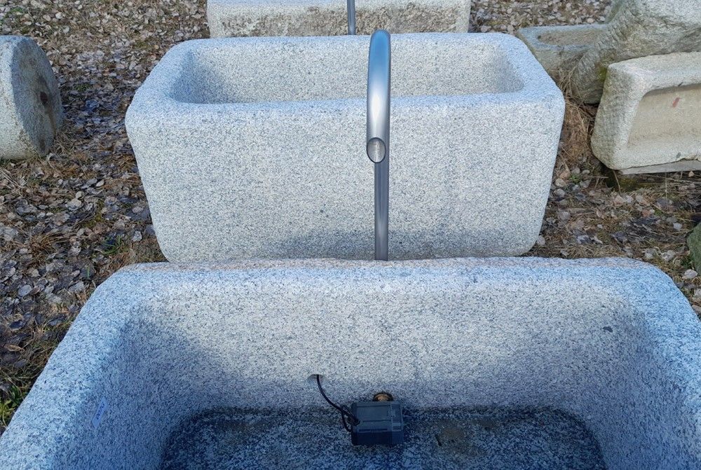 Wunderschöner Granitbrunnen mit montiertem Edelstahleinlauf und Umwälzpumpe, ein Schmuckstück für jeden Garten und jedes Haus Länge x Breite x Höhe: 134 x 75 x 62 cm Gewicht: 800 kg Preis: Euro 2215,97 zzgl. MwSt. = Euro 2399,-- Lieferung und kostenlose Selbstabholung möglich Wir haben mehrere solch... Mehr