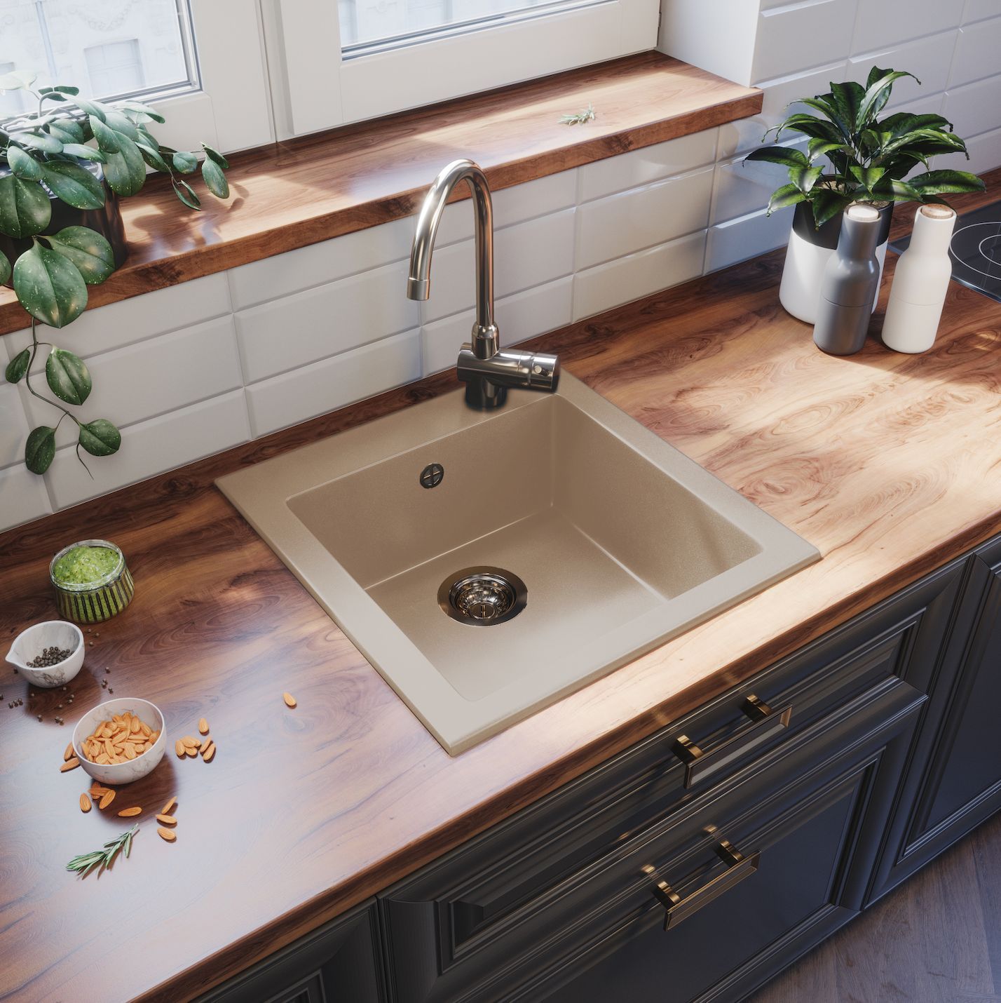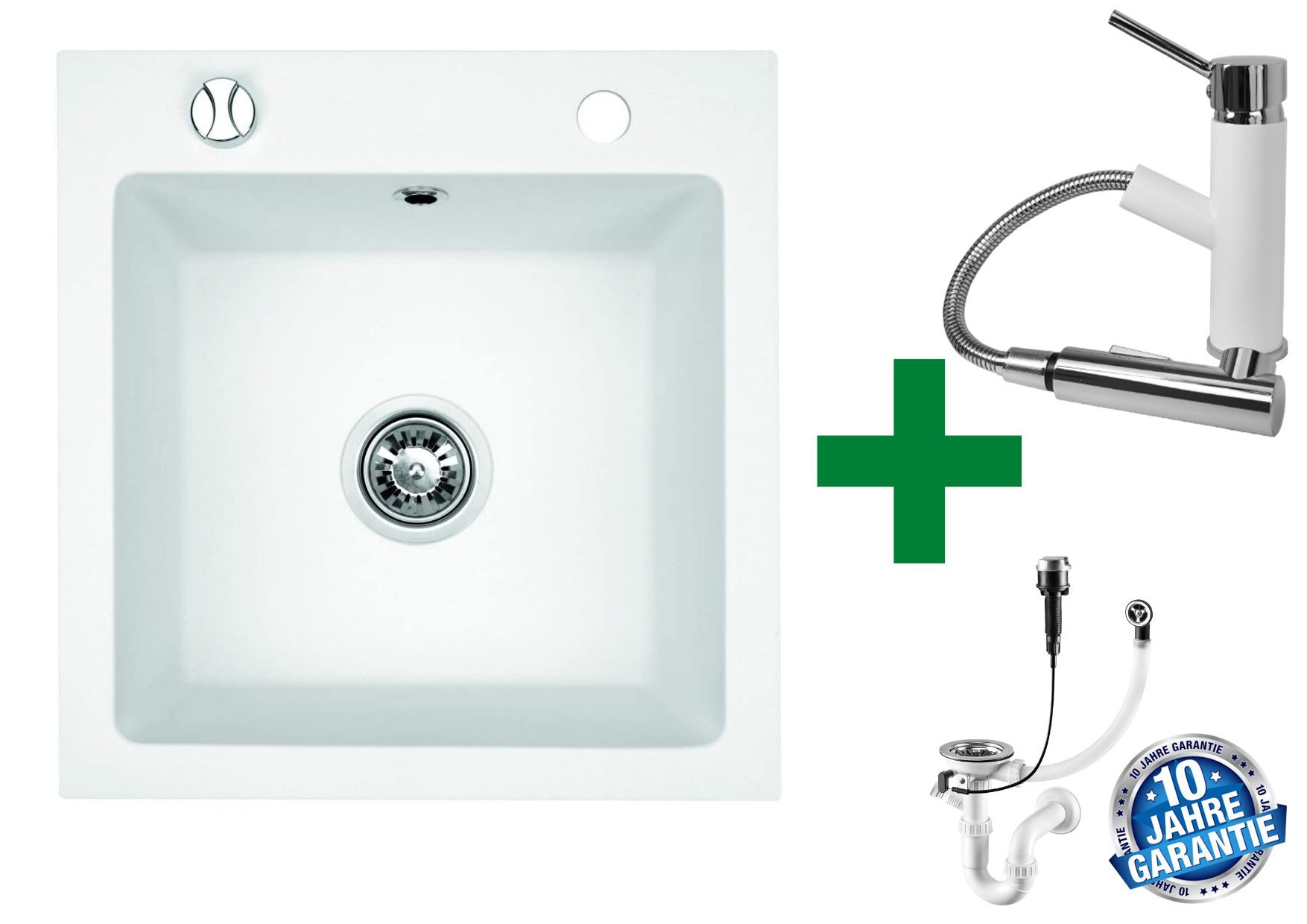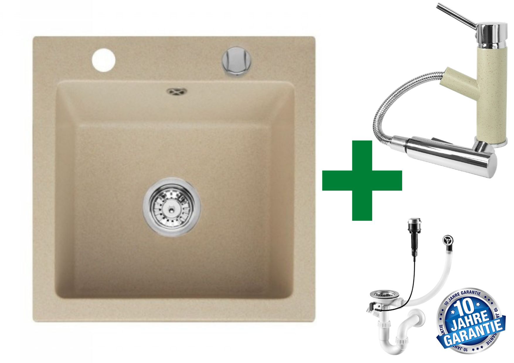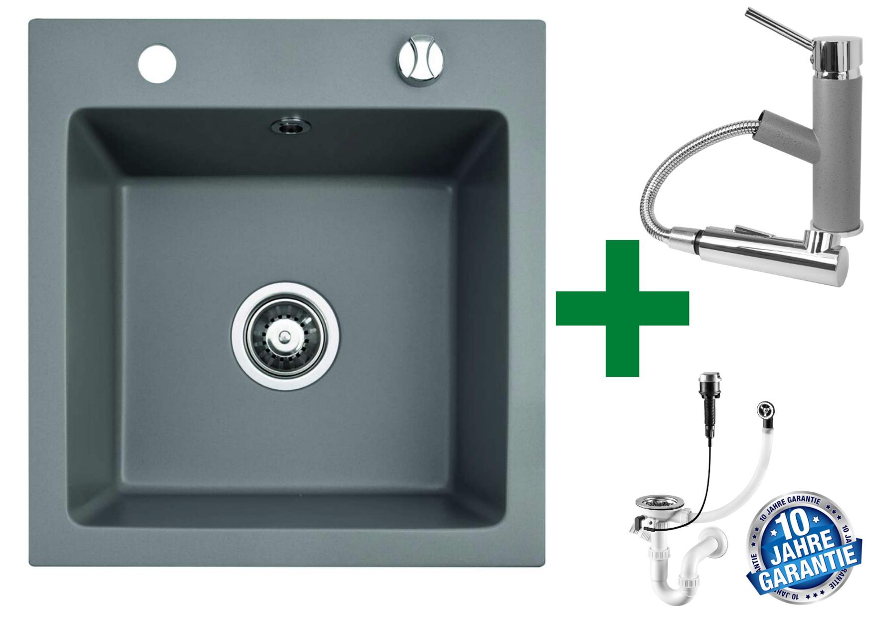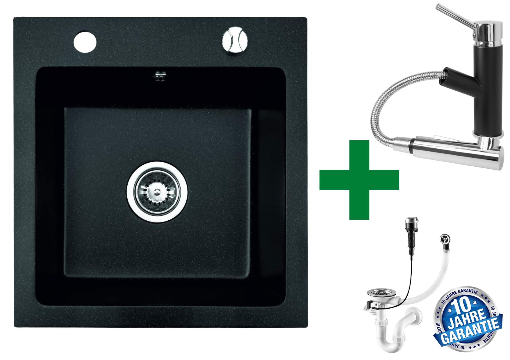 Granitspüle 48x50 + Armatur Cado – inkl. Siphon-Set