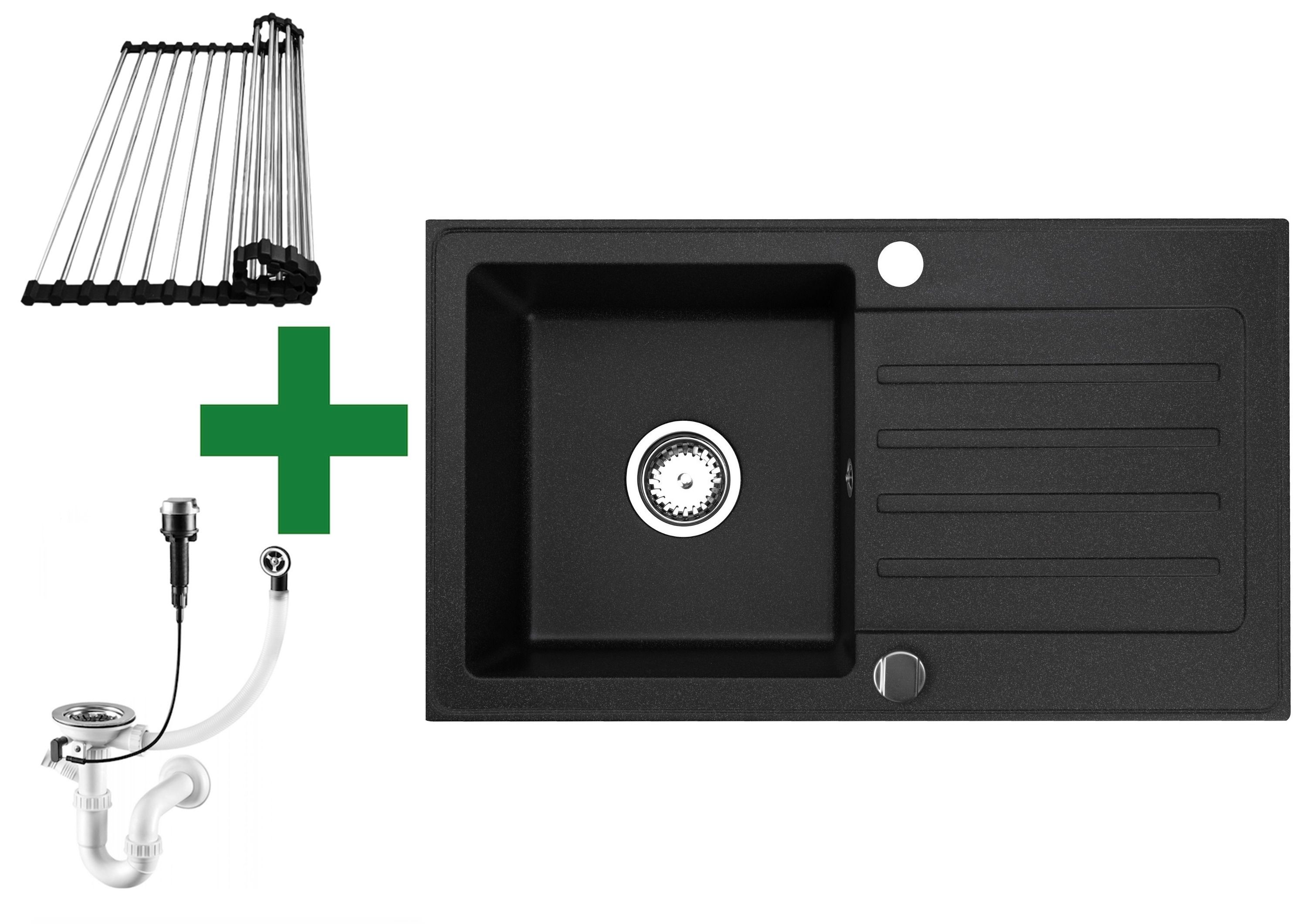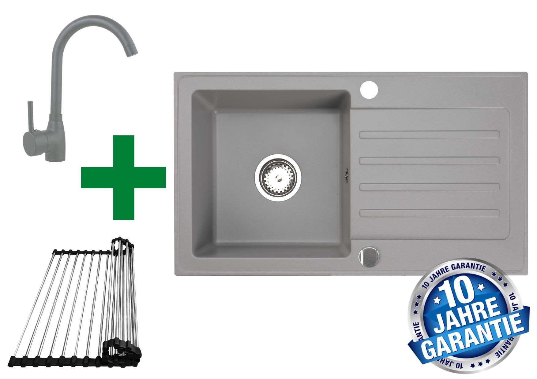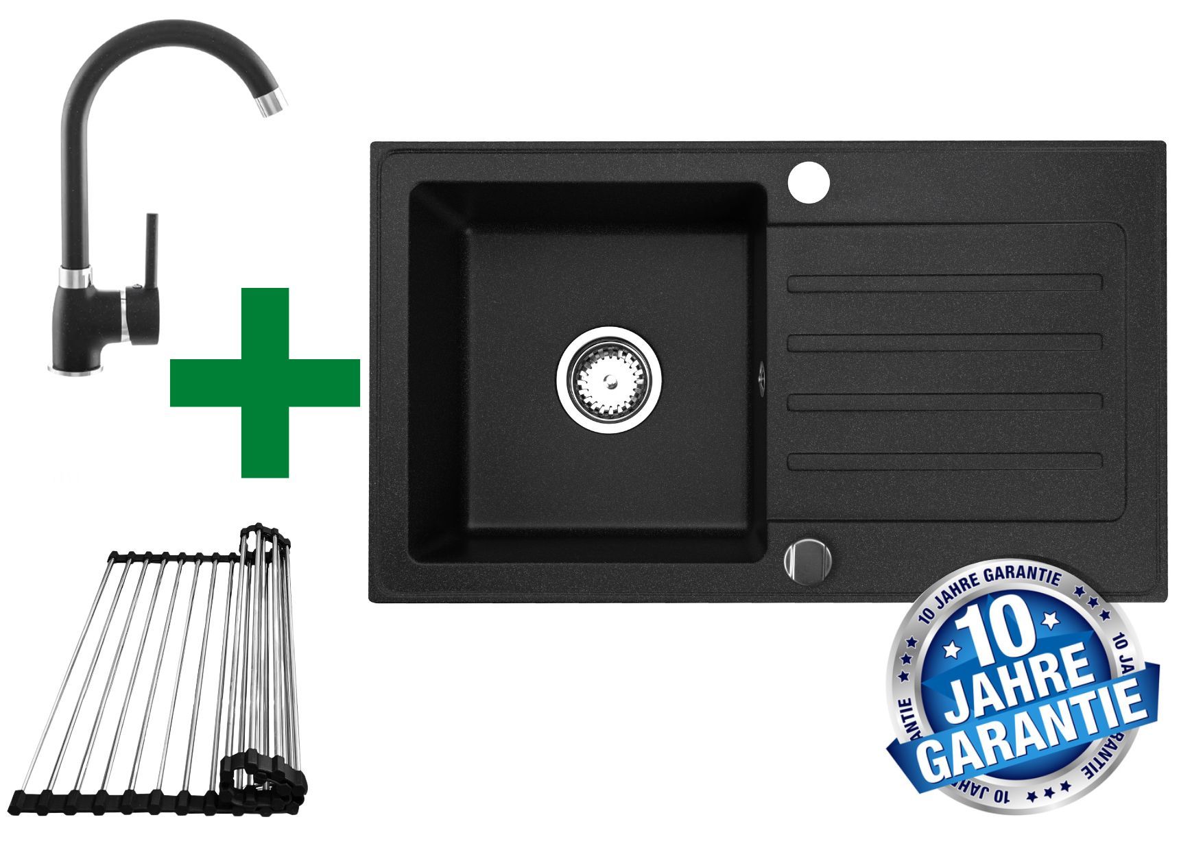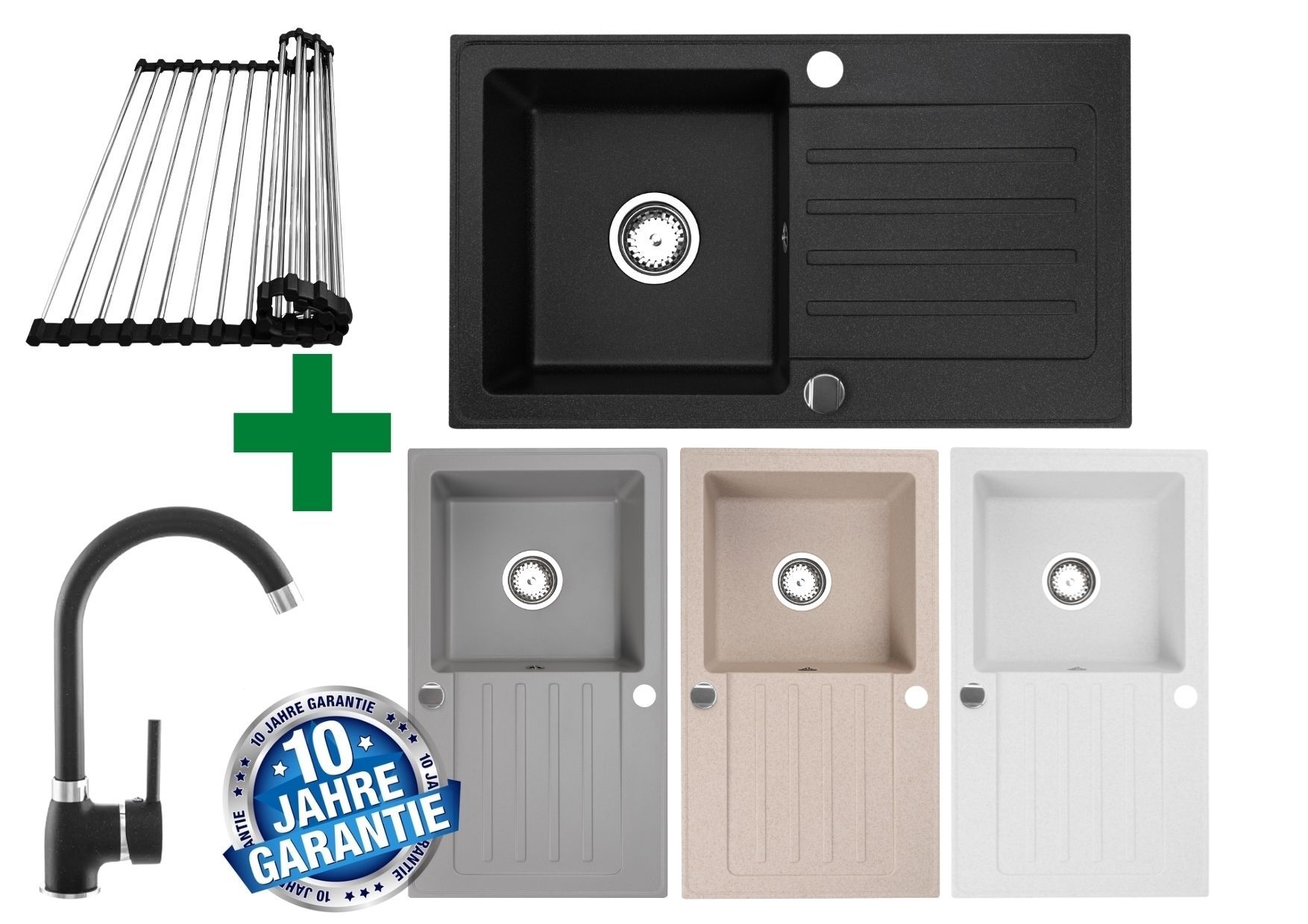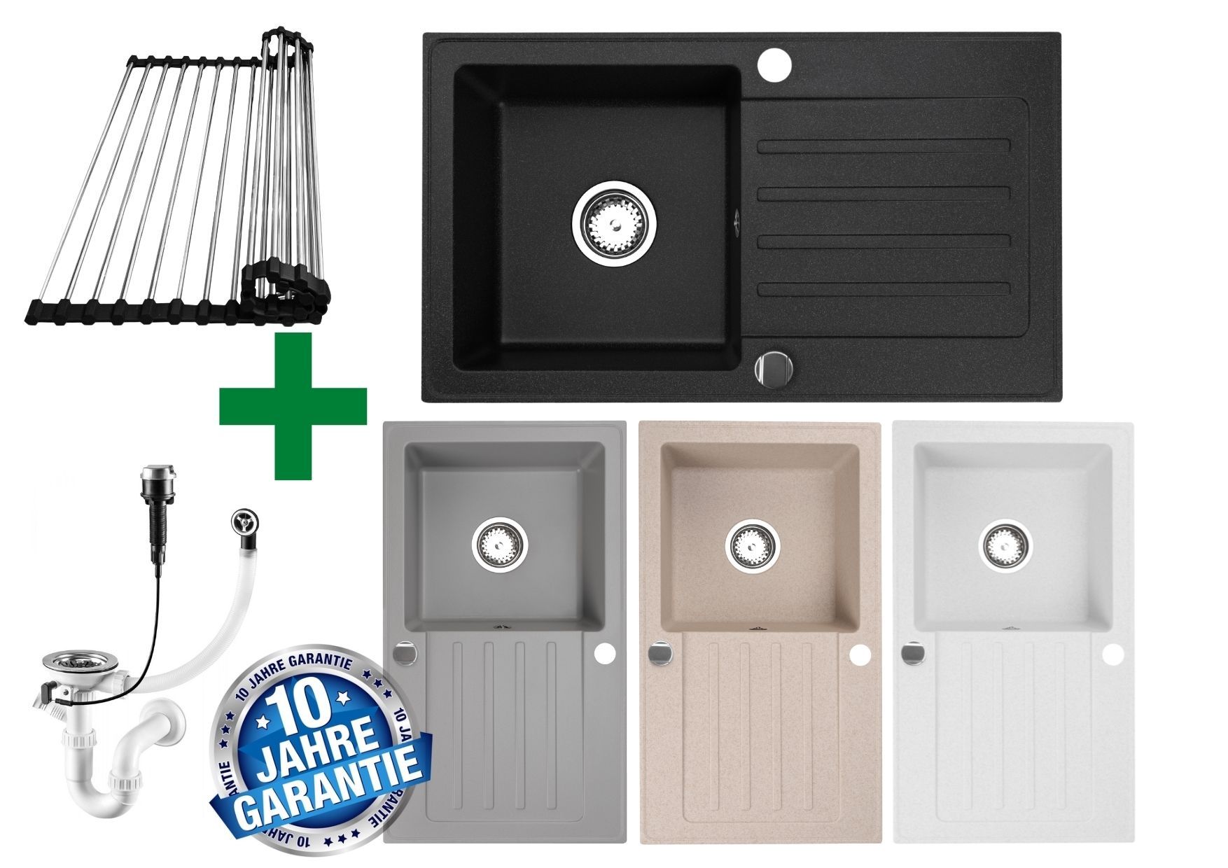 Granitspüle 76x44, Abtropfgitter + Siphon – mit/ohne Armatur