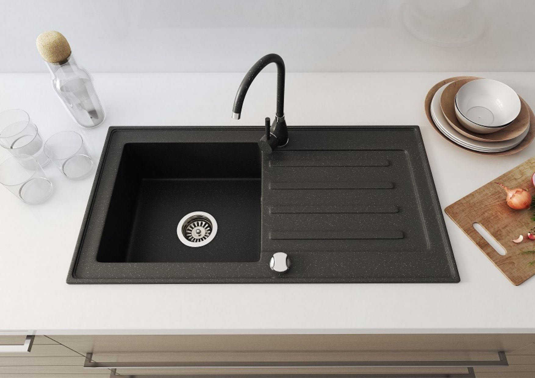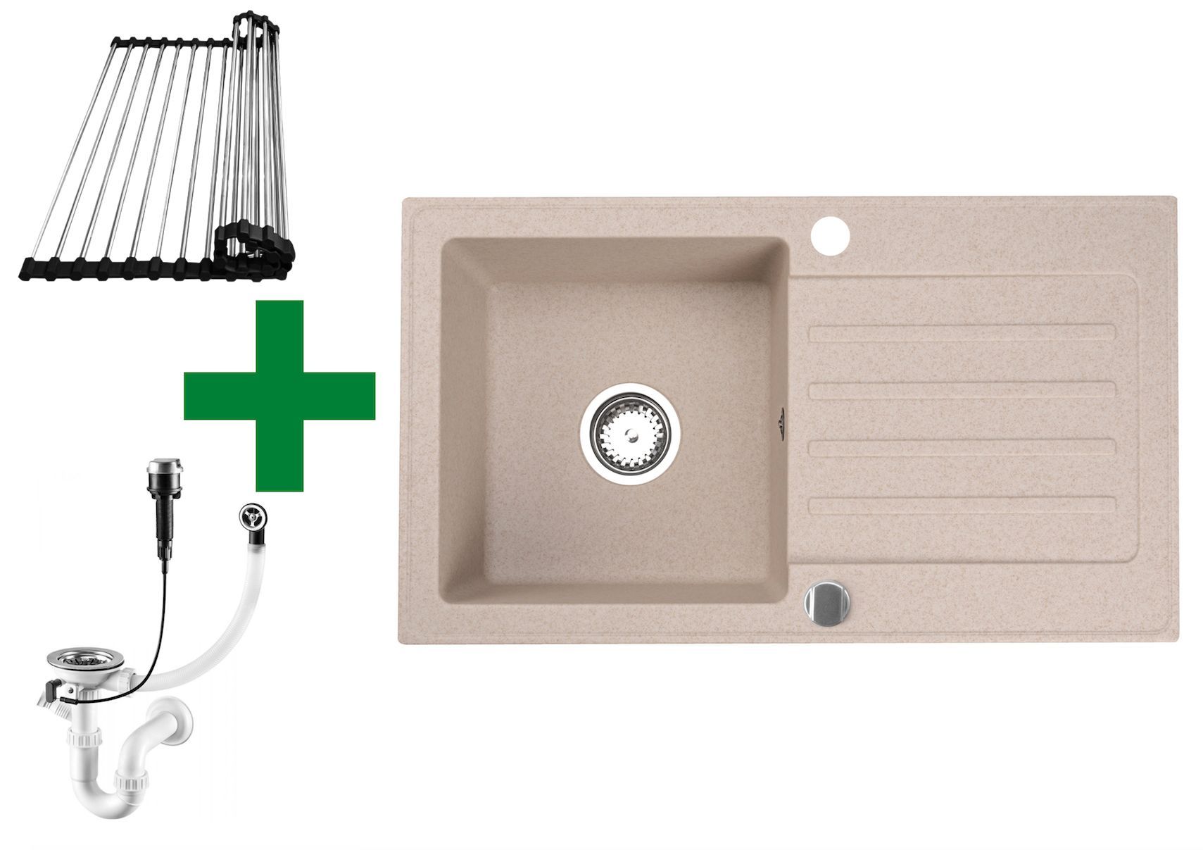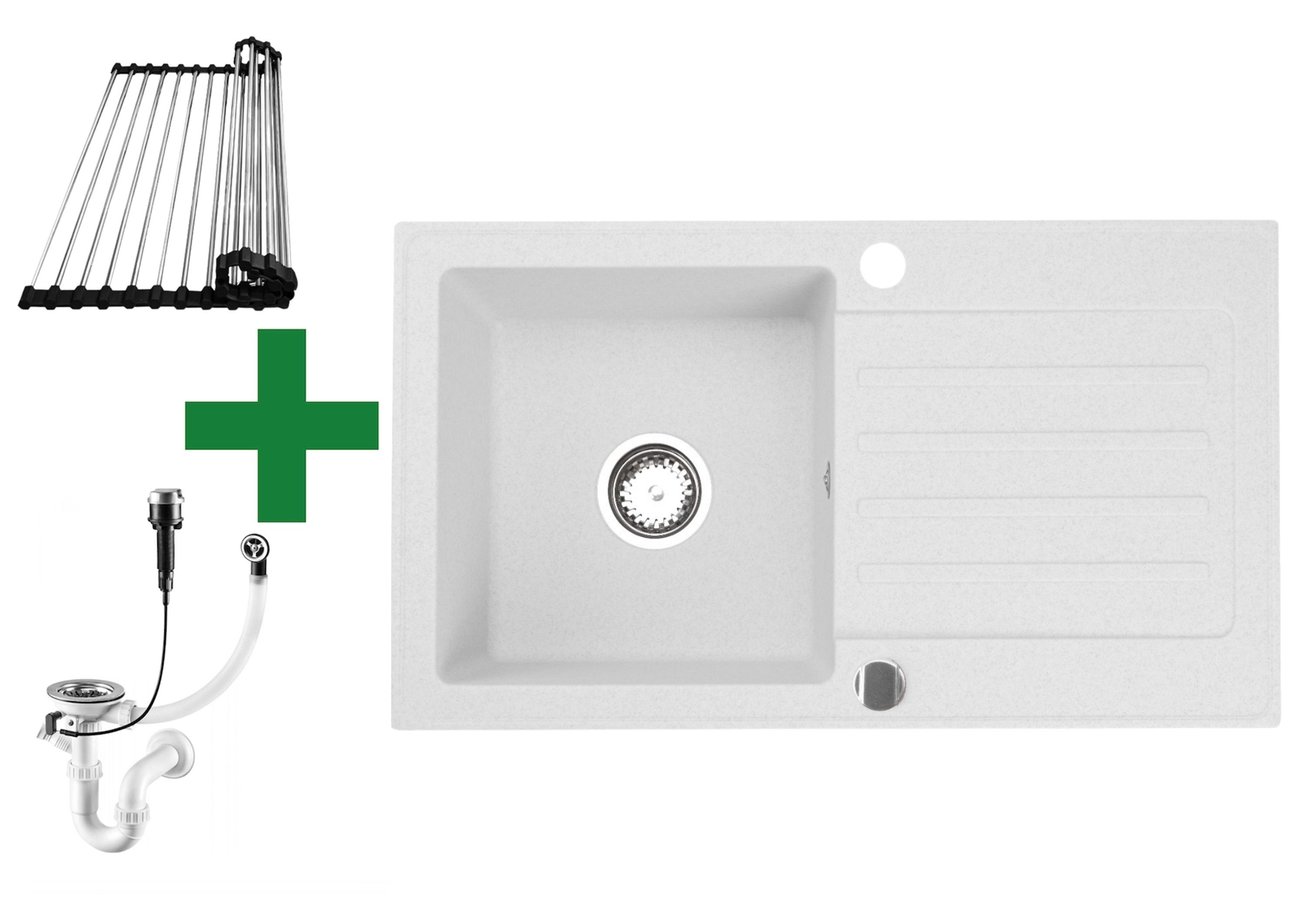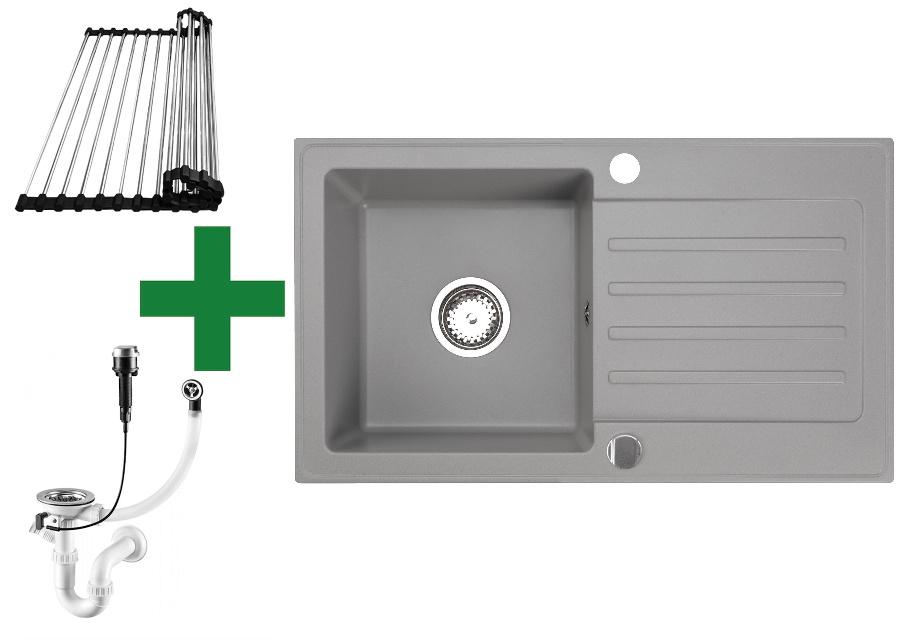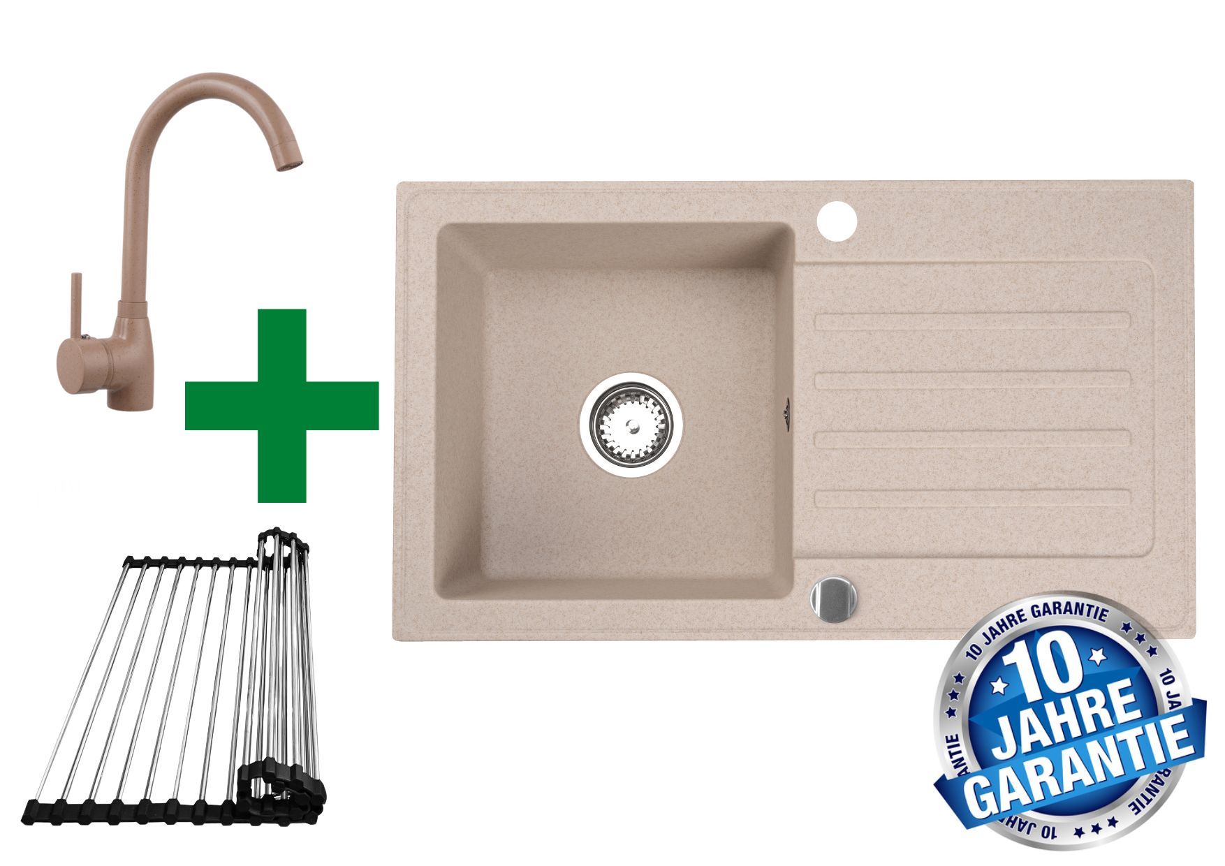 Granitspüle 76x44, Abtropfgitter + Siphon – mit/ohne Armatur