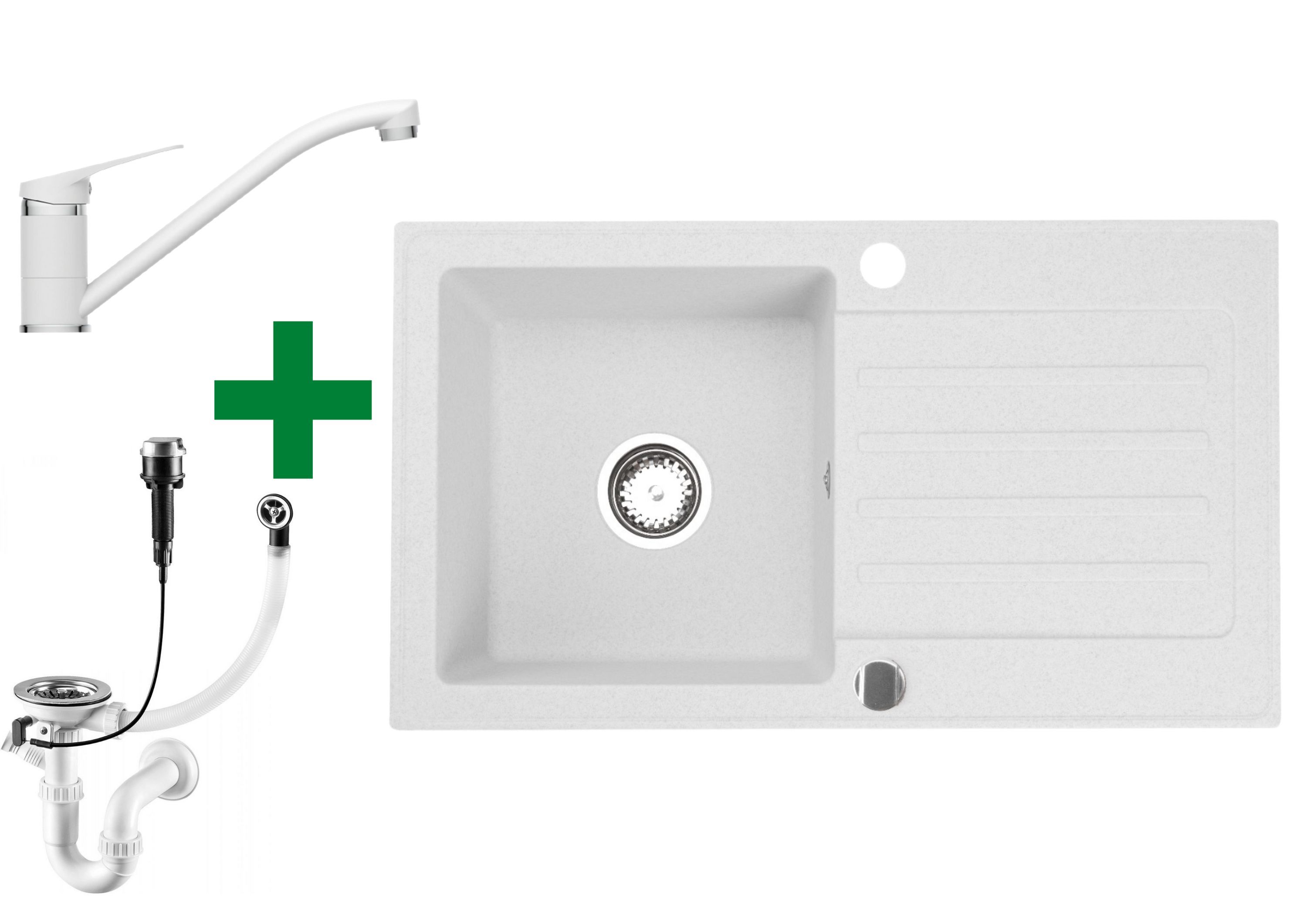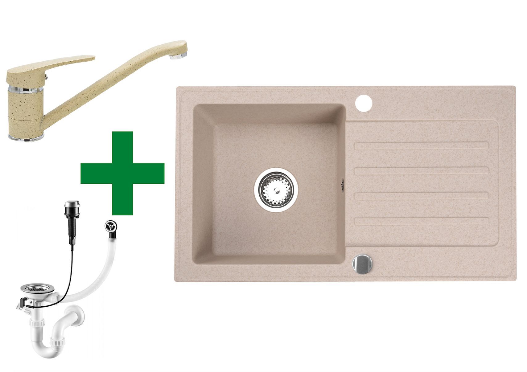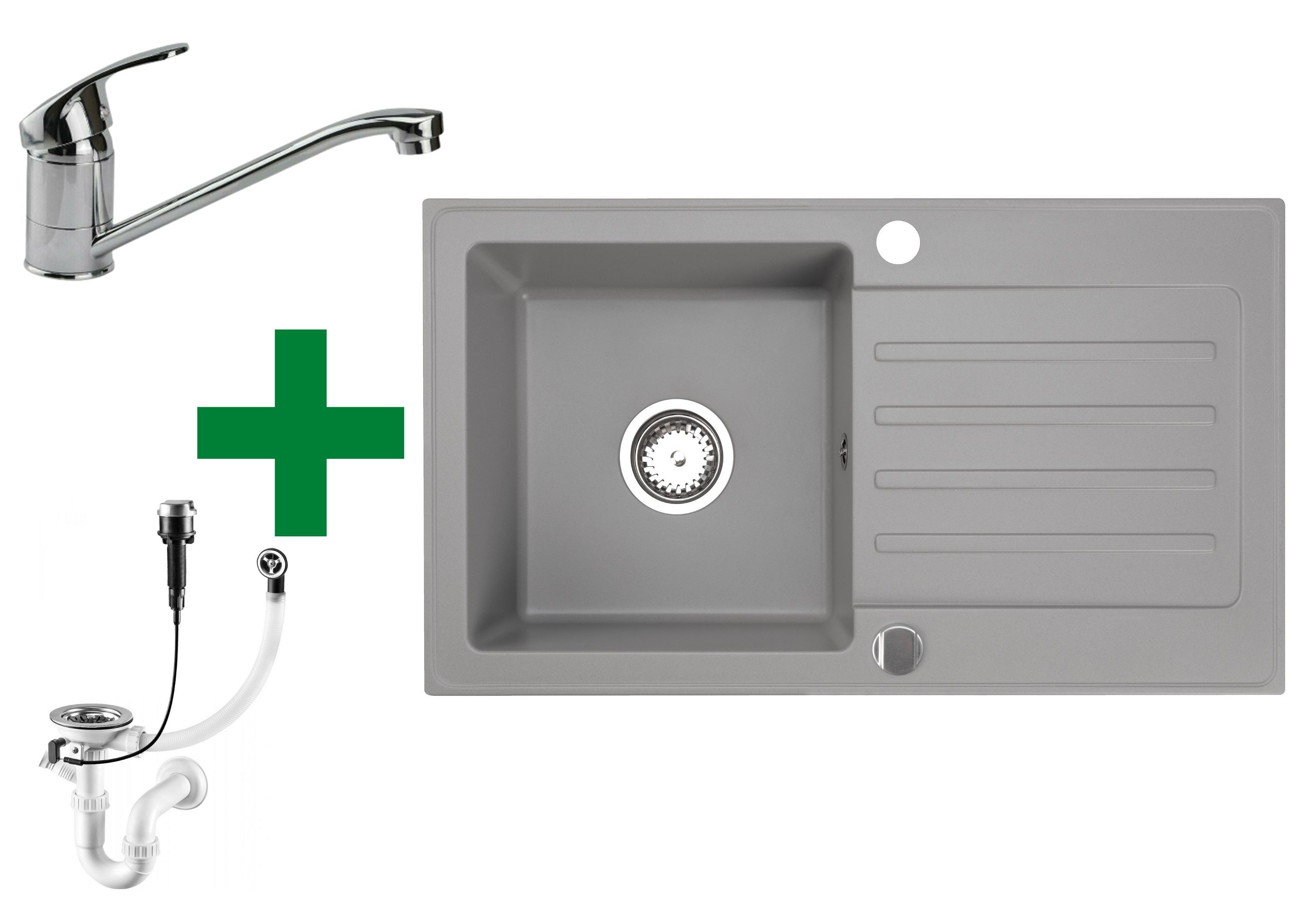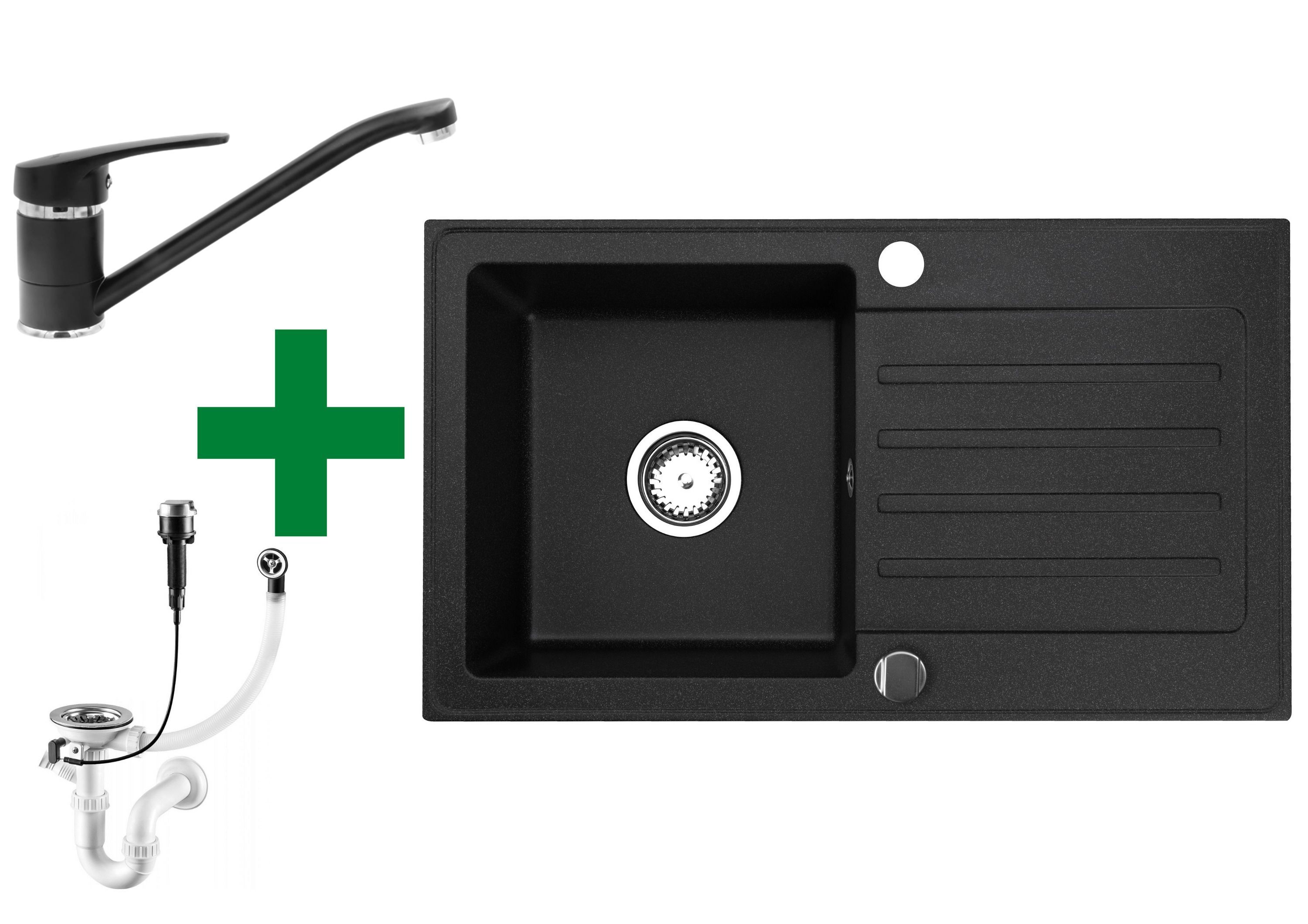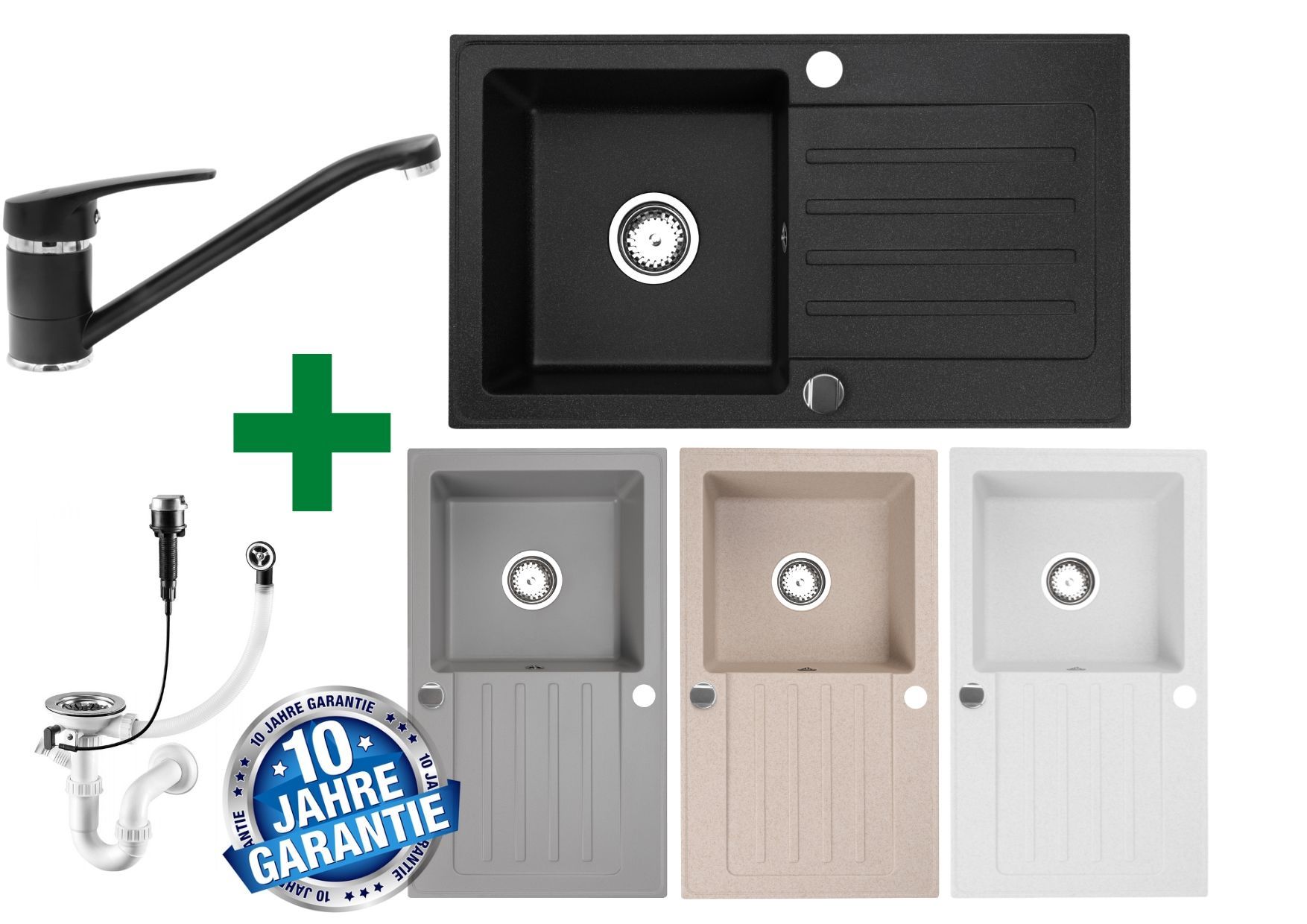 Granitspüle 76x44 + kleine Armatur + Siphon, in verschiedenen Farben