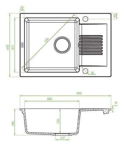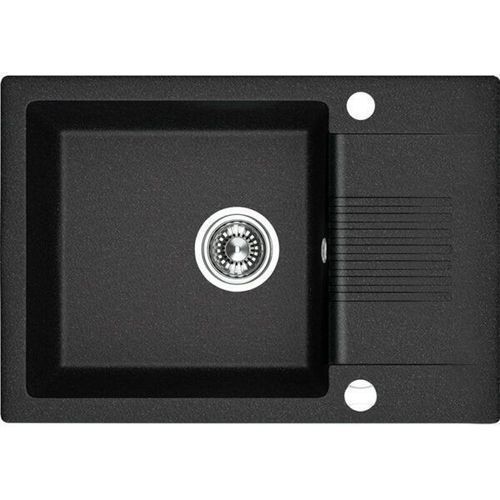 Granitspüle Einzelbecken CELIA 44x65 Schwarz mit Abtropffläche | Siphon im SET!