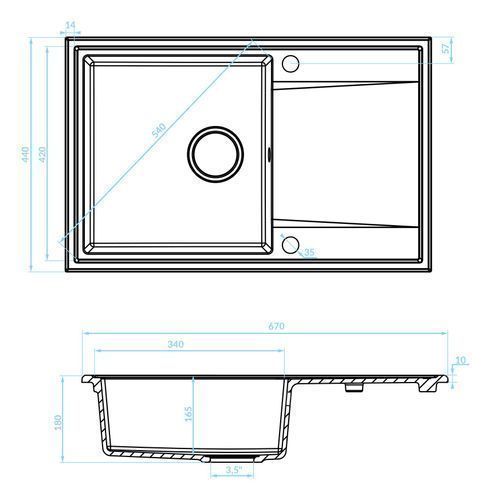 Granitspüle Einzelbecken HUNTER 44x67 Grau mit langer Abtropffläche | Siphon im SET!