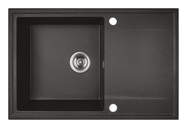 Granitspüle Einzelbecken HUNTER 44x67 Schwarz mit langer Abtropffläche, Siphon im SET