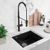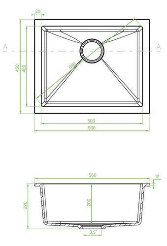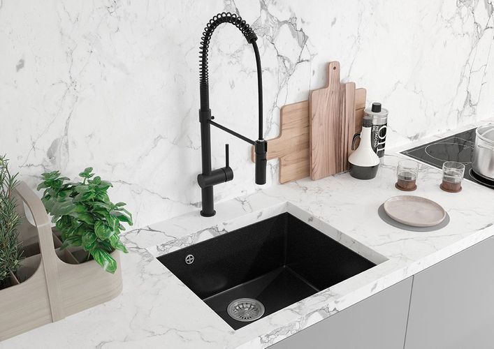 Granitspüle Einzelbecken IBIZA 56x46 Schwarz | Siphon im SET!
