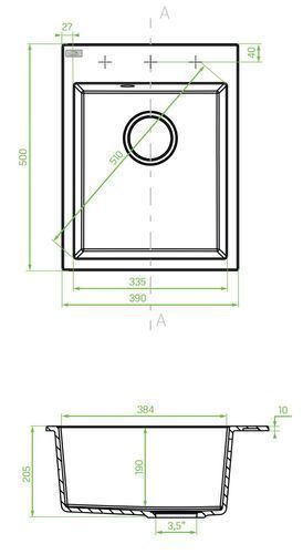 Granitspüle Einzelbecken Monchichi 50x39 Schwarz | Siphon im SET!