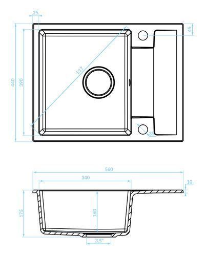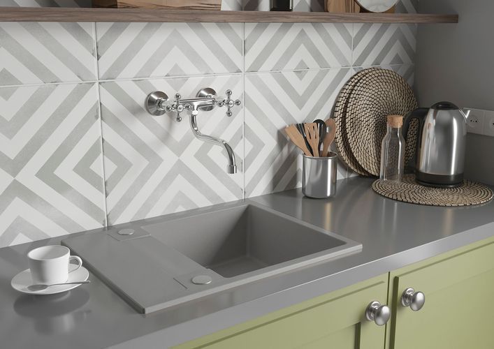 Granitspüle Einzelbecken RAB 44x56 Grau mit kurzer Abtropffläche | Siphon im SET!