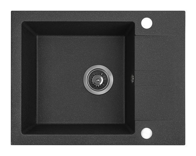 Granitspüle Einzelbecken SHIRE 44x56 Schwarz mit kurzer Abtropffläche | Siphon im SET