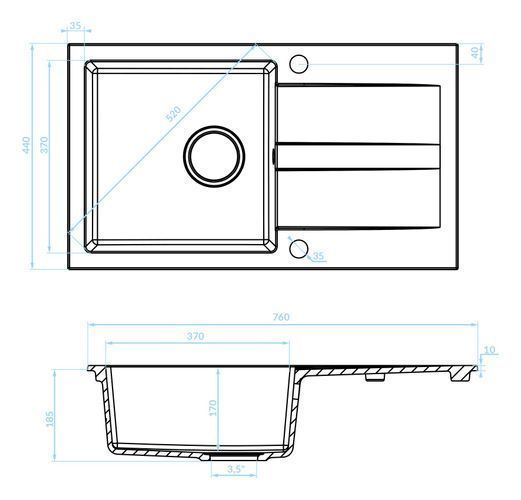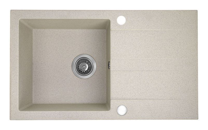 Granitspüle Einzelbecken SHIRE 44x76 Beige mit langer Abtropffläche | Siphon im SET!