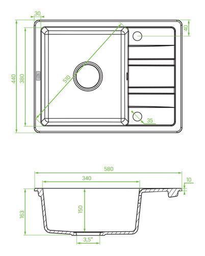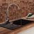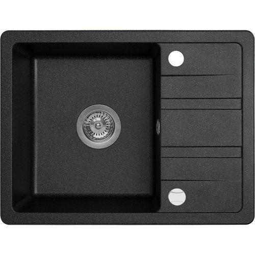 Granitspüle Einzelbecken STELLA 44x58 Schwarz mit Abtropffläche | Siphon im SET!