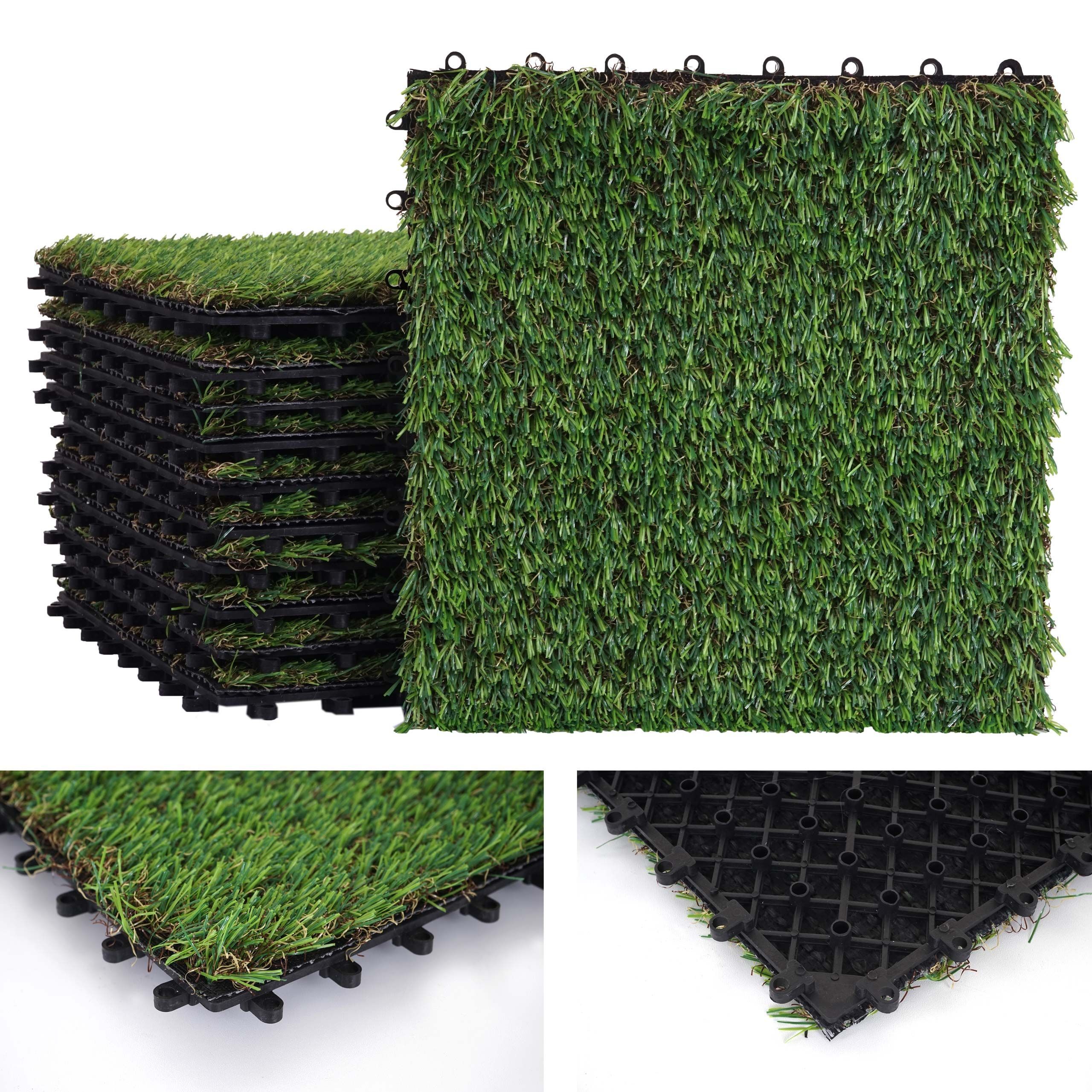 Mendler Grasfliese HWC-E13, Rasenfliese Grasmatte Kunstrasen, Balkon/Terrasse 11x je 30x30cm