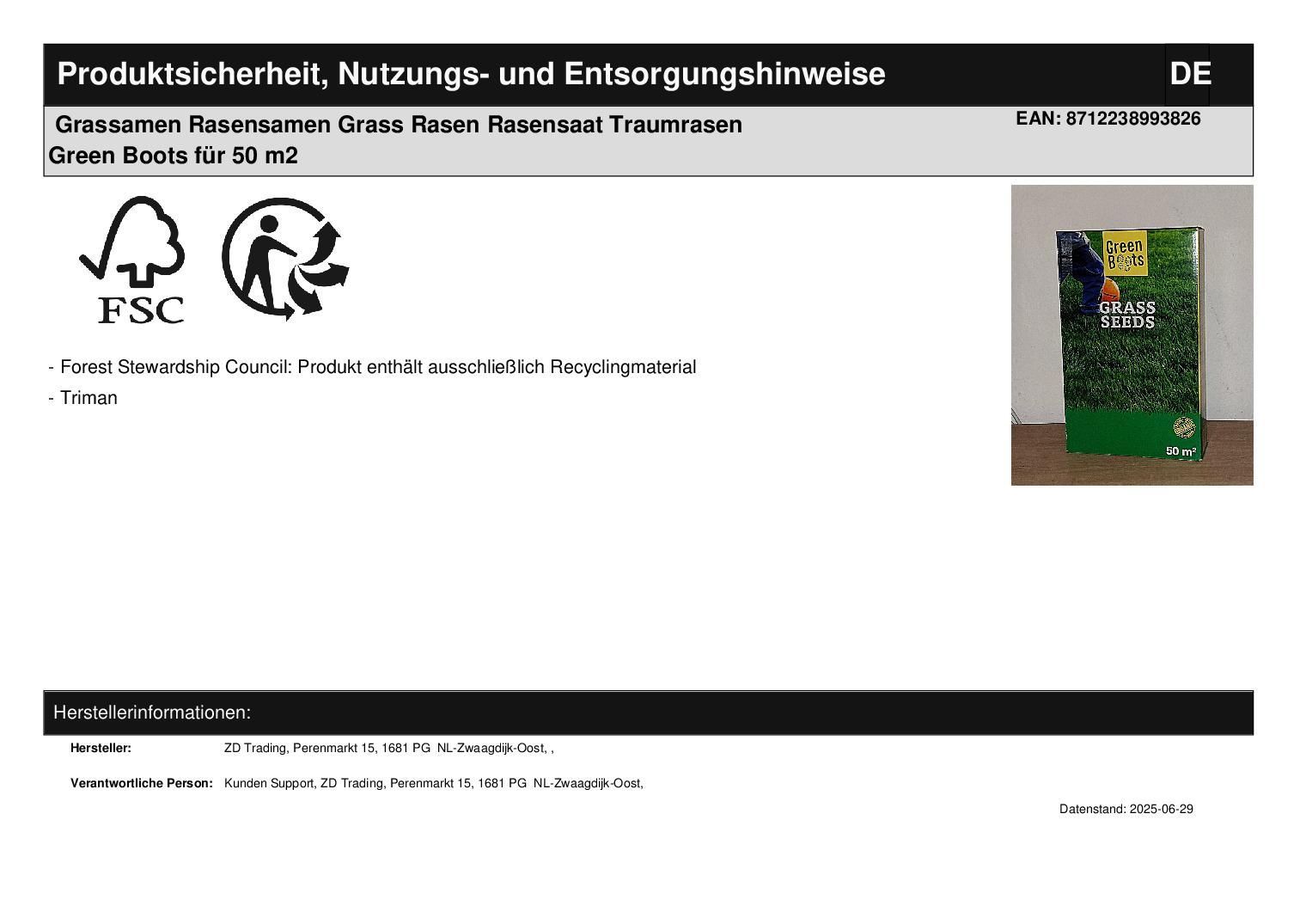 Grassamen Rasensamen Grass Rasen Rasensaat Traumrasen Green Boots für 50 m2