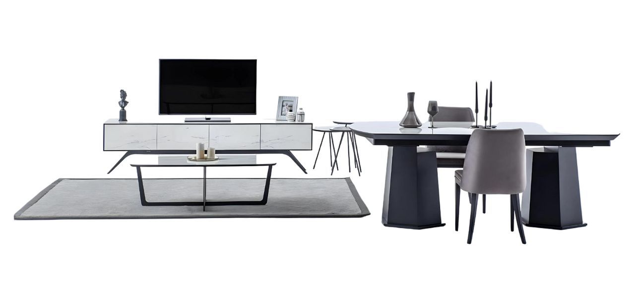 Esszimmer Möbel Designer Schwarzer Tisch Edelstahl Luxus Polsterstühle
