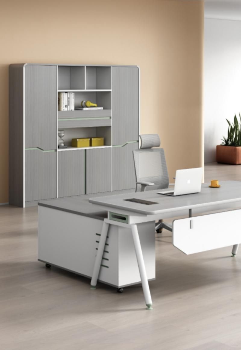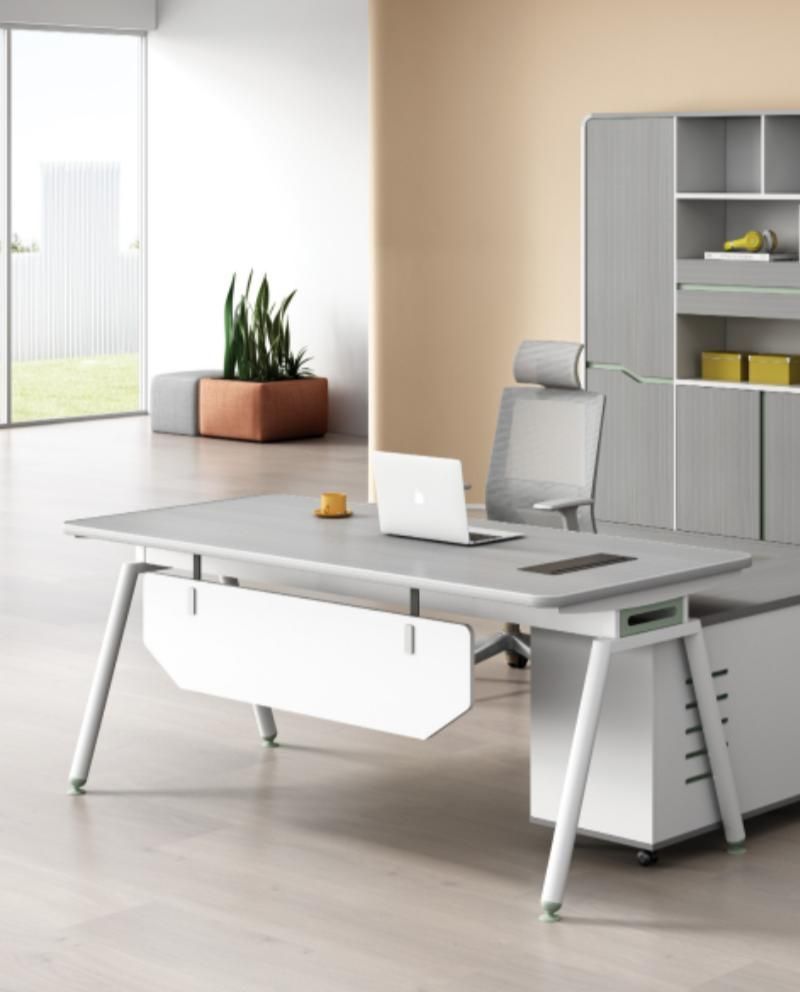 Grau Schreibtisch mit Schubladen, Versteckter Stauraum, 160x80x75 cm