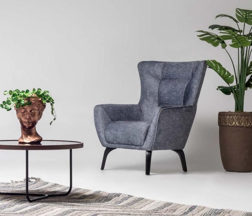 Grau Sessel Ohrensessel Wohnzimmer Stoffsessel Polster Einsitzer Holz