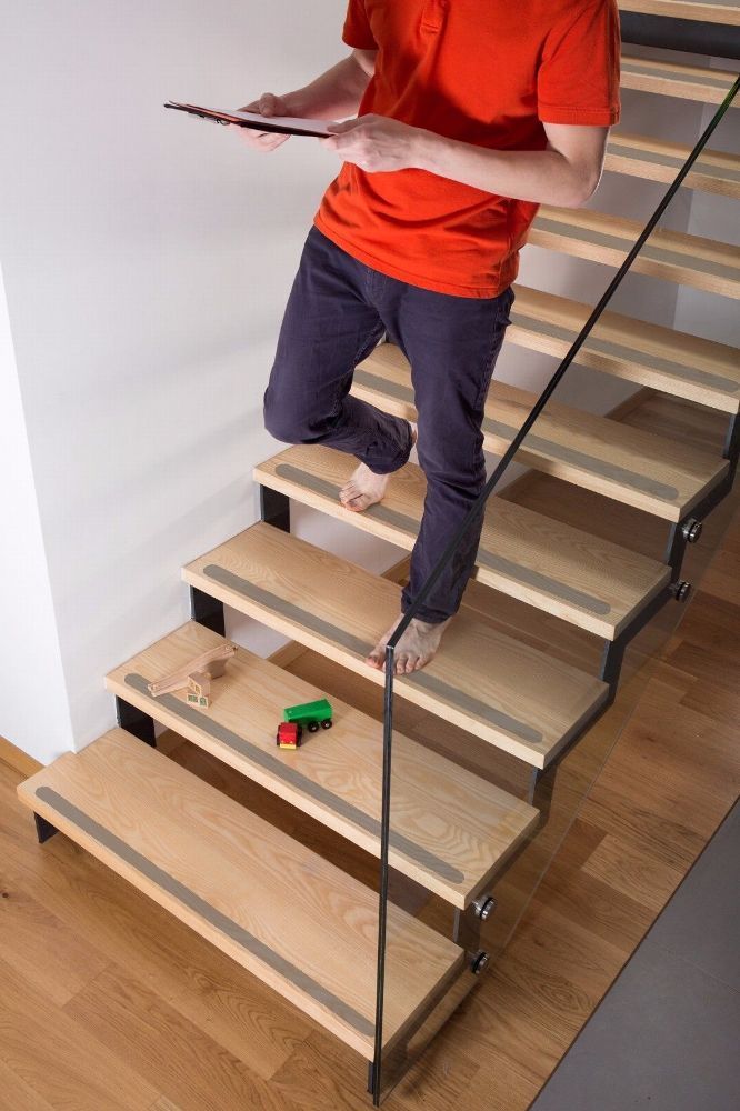 graue gummierte Antirutsch Streifen in 3 cm Breite für Ihre Treppe