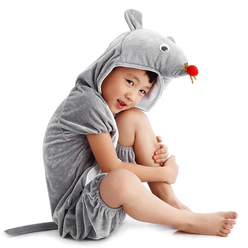 Graue Maus Kinder Onesie Tier Cosplay Pyjamas Karneval Kostum Plusch