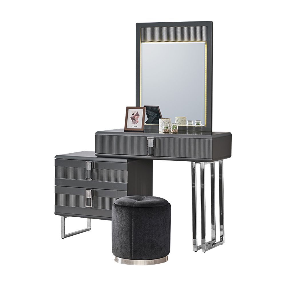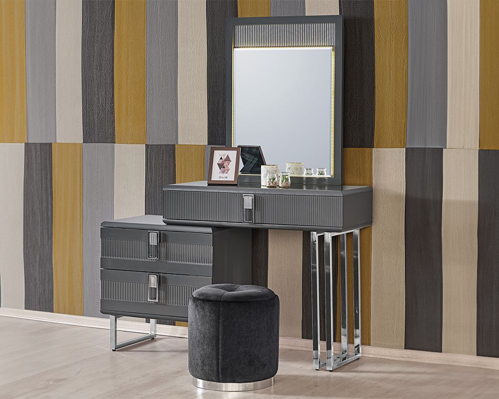 Grauer Frisiertisch Luxuriöse Schminkkonsole Robuster Holz Kosmetiktisch