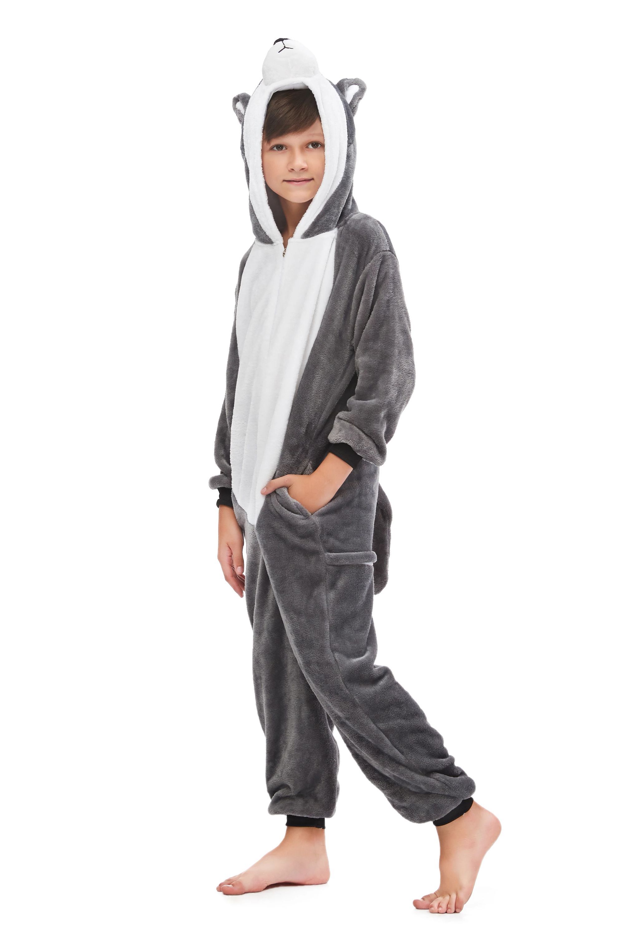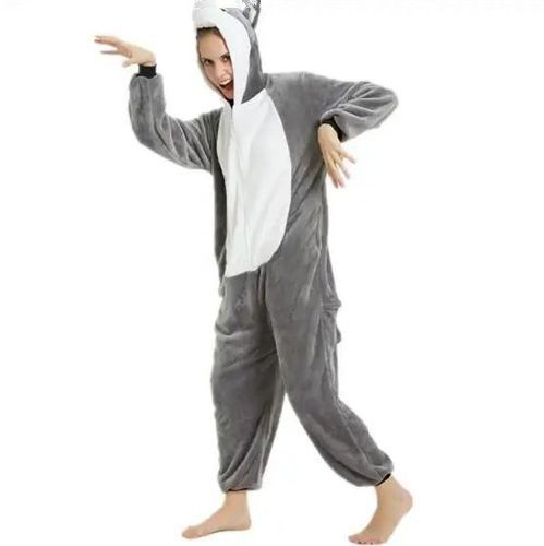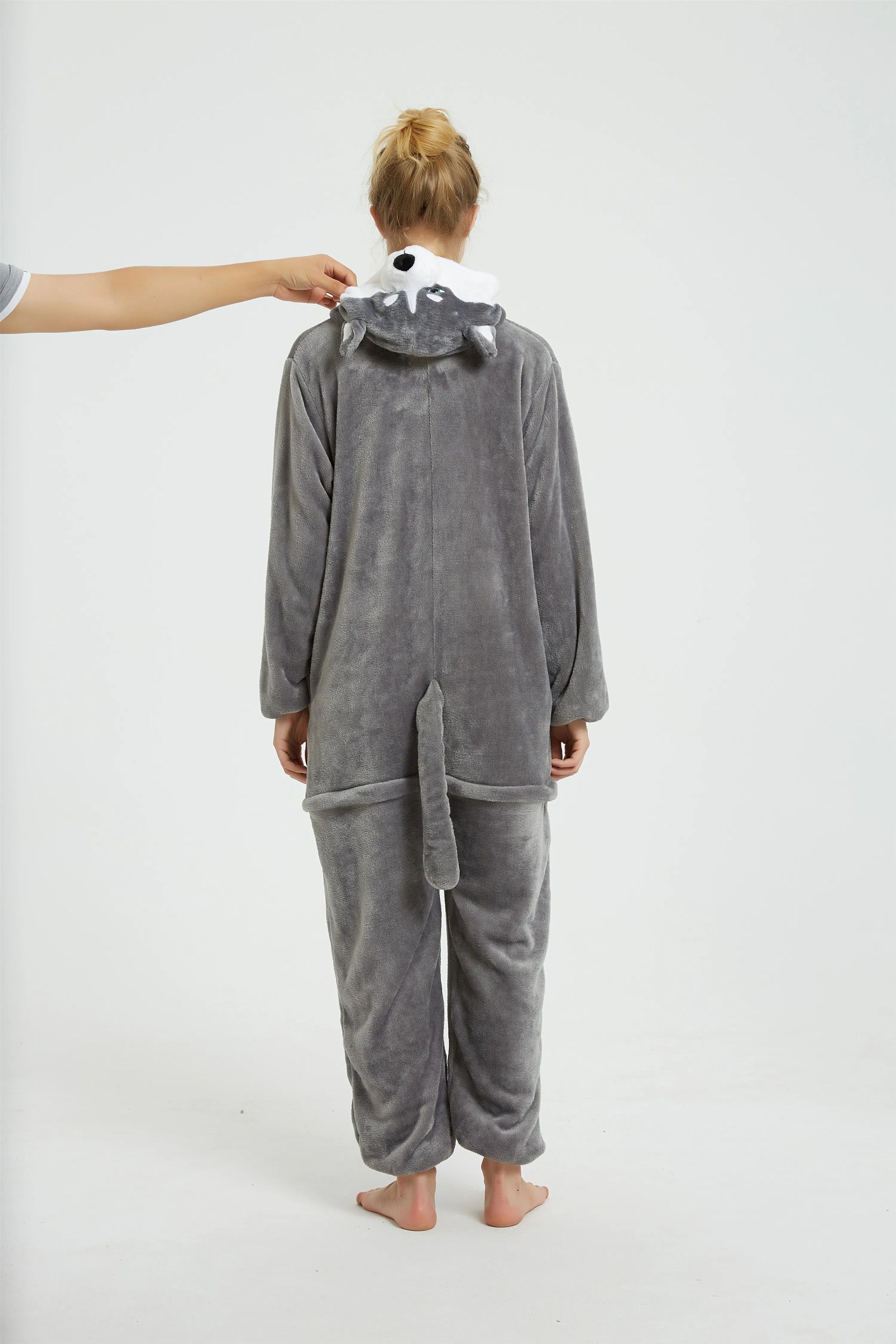 Grauer Husky Hund Kigurumi Onesie Erwachsene Tier Cosplay Pyjamas Plusch Flanell