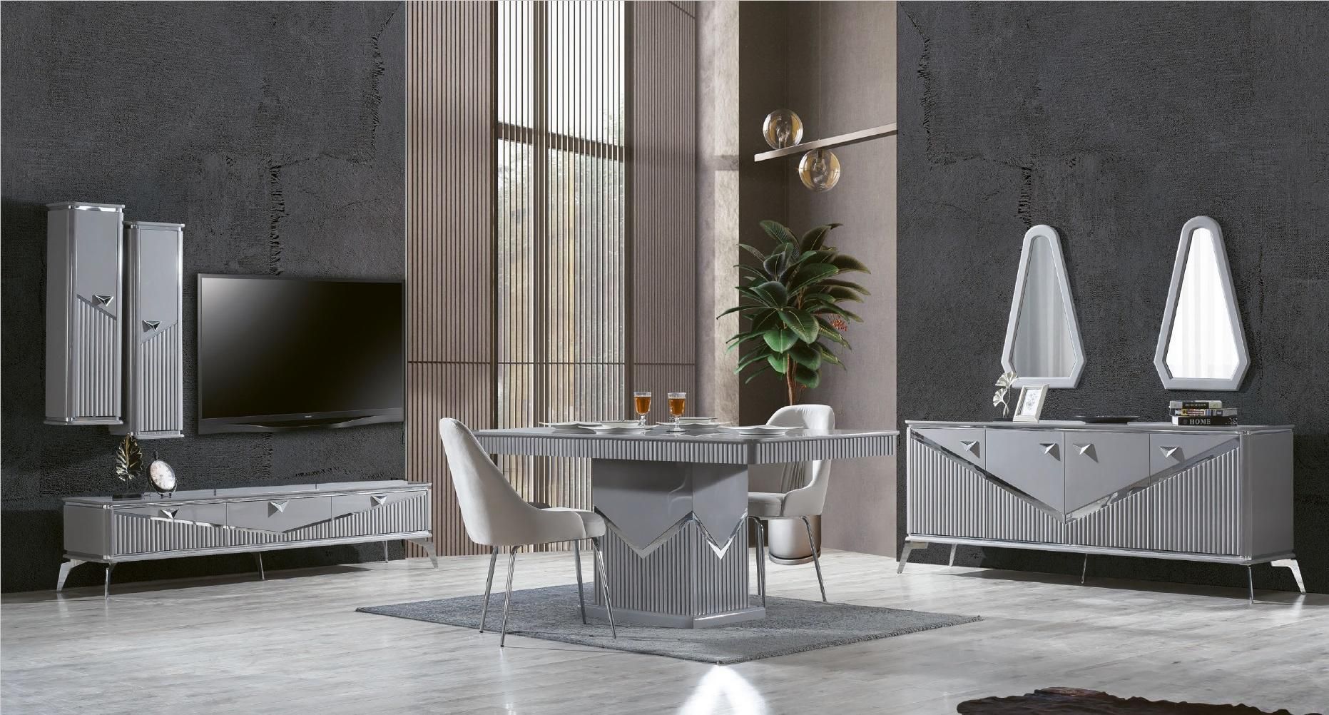 Grauer Moderner Esstisch Luxus Möbel Esszimmer Einrichtung Holz Design