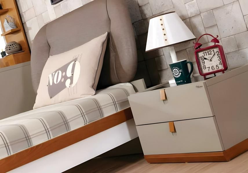 Grauer Nachttisch aus Holz im modernen Stil