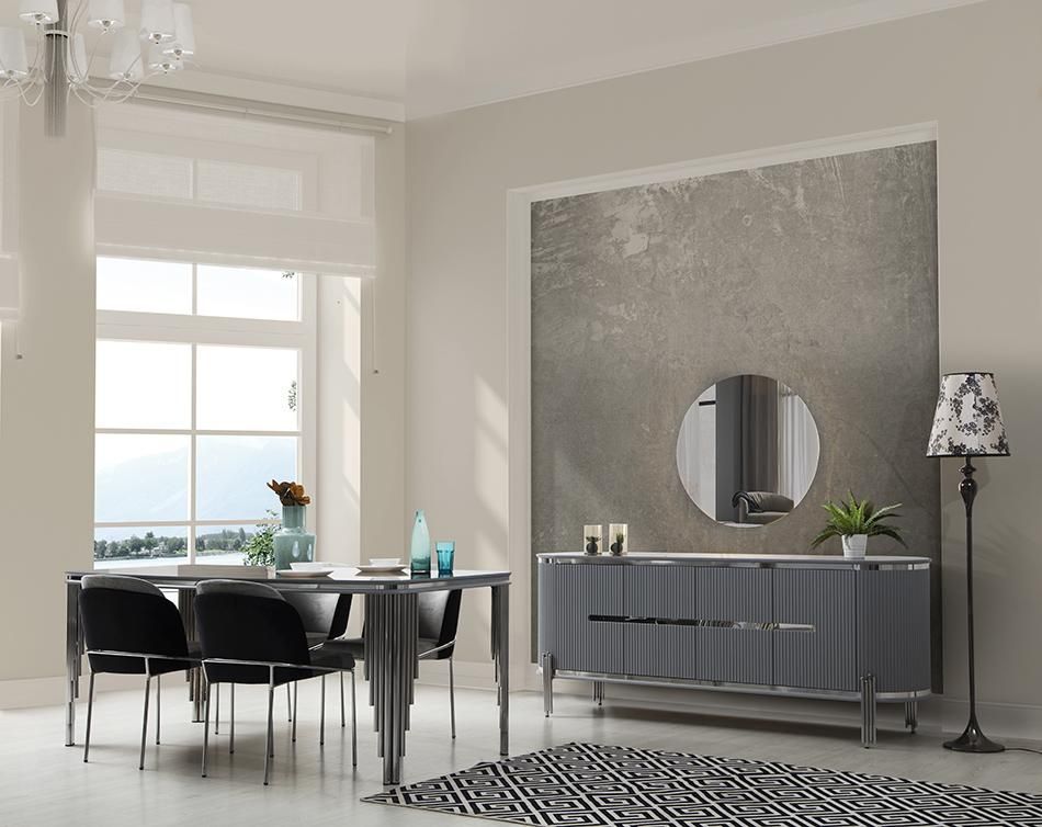Graues Esszimmer Tisch Luxus Essgruppe Esstisch Stühle Sideboard 6tlg