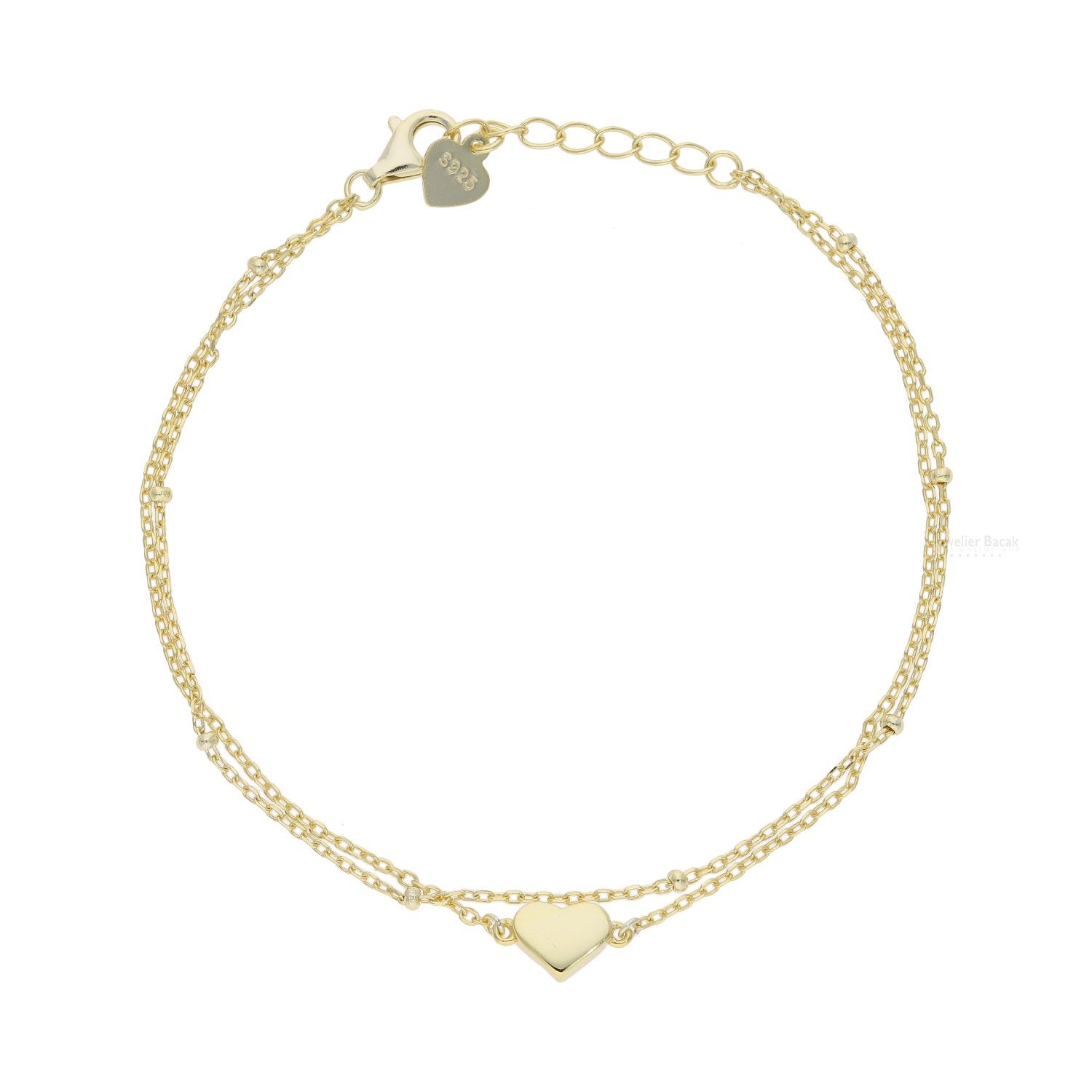 Gravur Armband Silber 925 Gold plattiert Herz zweireihig FSAB017gg