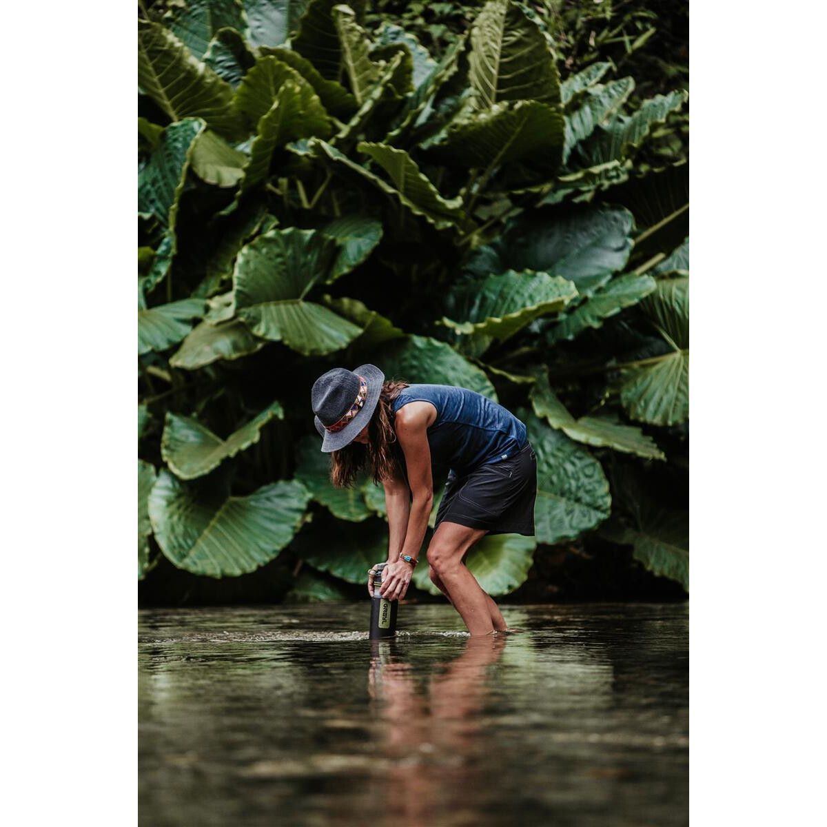 • Nur mit Süßwasser (keine andere Flüssigkeit) pressen. Kein Salz- oder Brackwasser. Setze die Innenpresse nicht unbehandeltem Wasser aus bzw. fülle sie nicht mit unbehandeltem Wasser, da es zu Kreuzkontaminationen kommen kann. Tannine sind natürliche organische Verbindungen, die aus verrottenden Vegetationen und Bäumen austreten und zur Verstopfung von Patronen führen können. Verwende keinen Grayl in Wasser mit hohem Tassin-Gehalt. Patronen werden nach einem Einfrier-/Auftauzyklus nicht wesentlich beeinträchtigt. Verwende die Kartusche nach 3 oder mehr Einfrier-/Auftauzyklen nicht mehr.